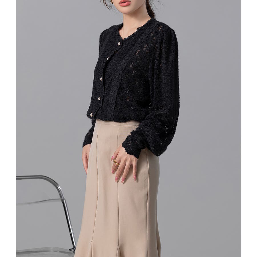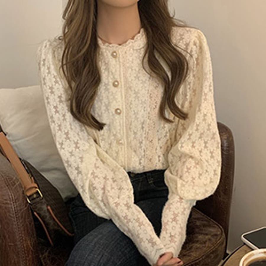 高級感をプラスしてくれるレトロガーリーなパール風ボタンを使用。