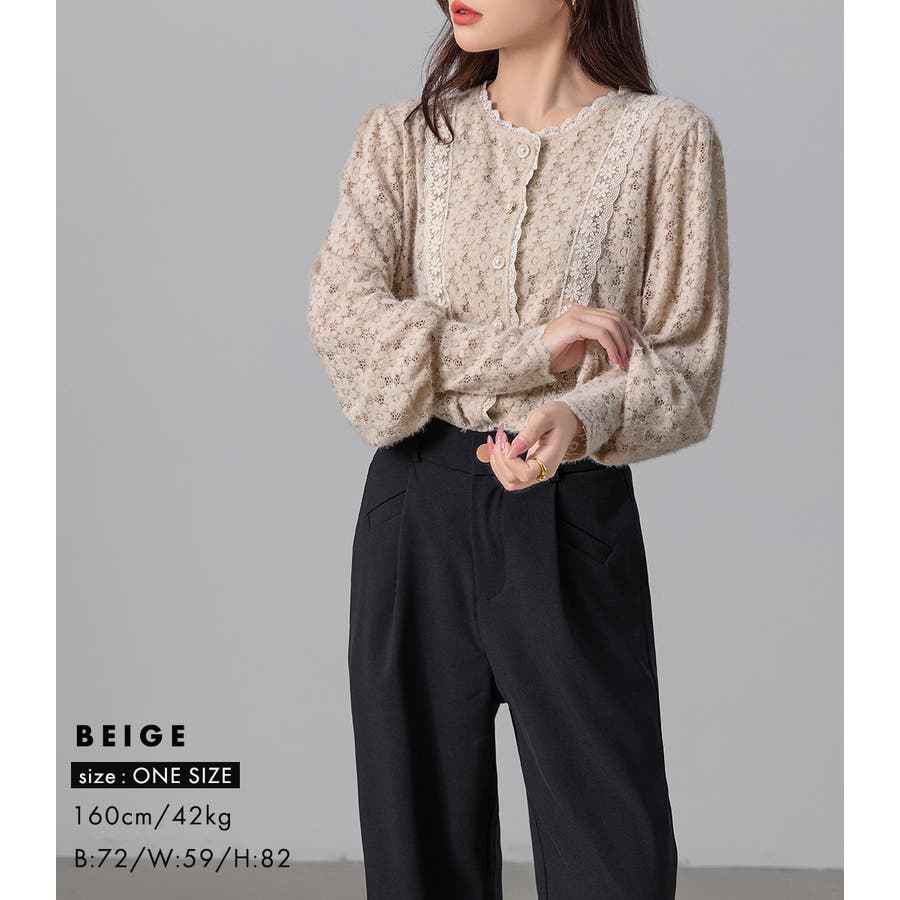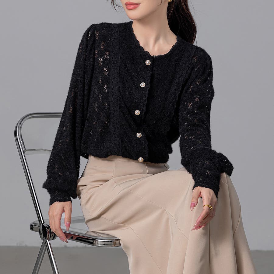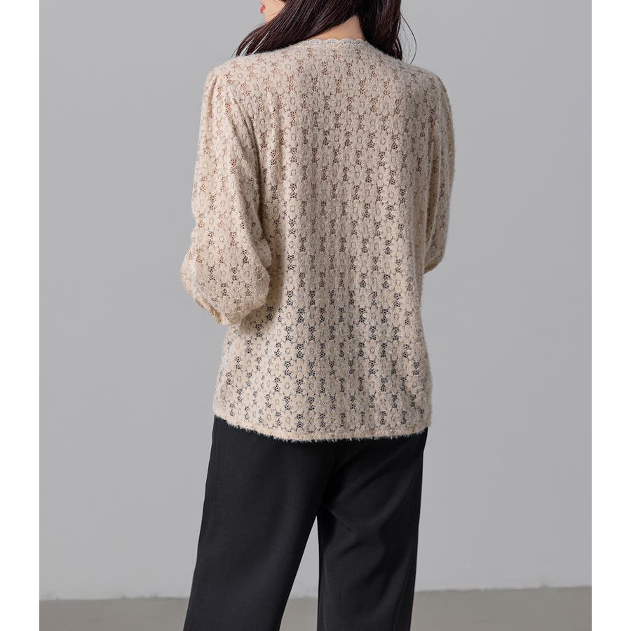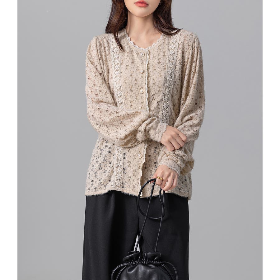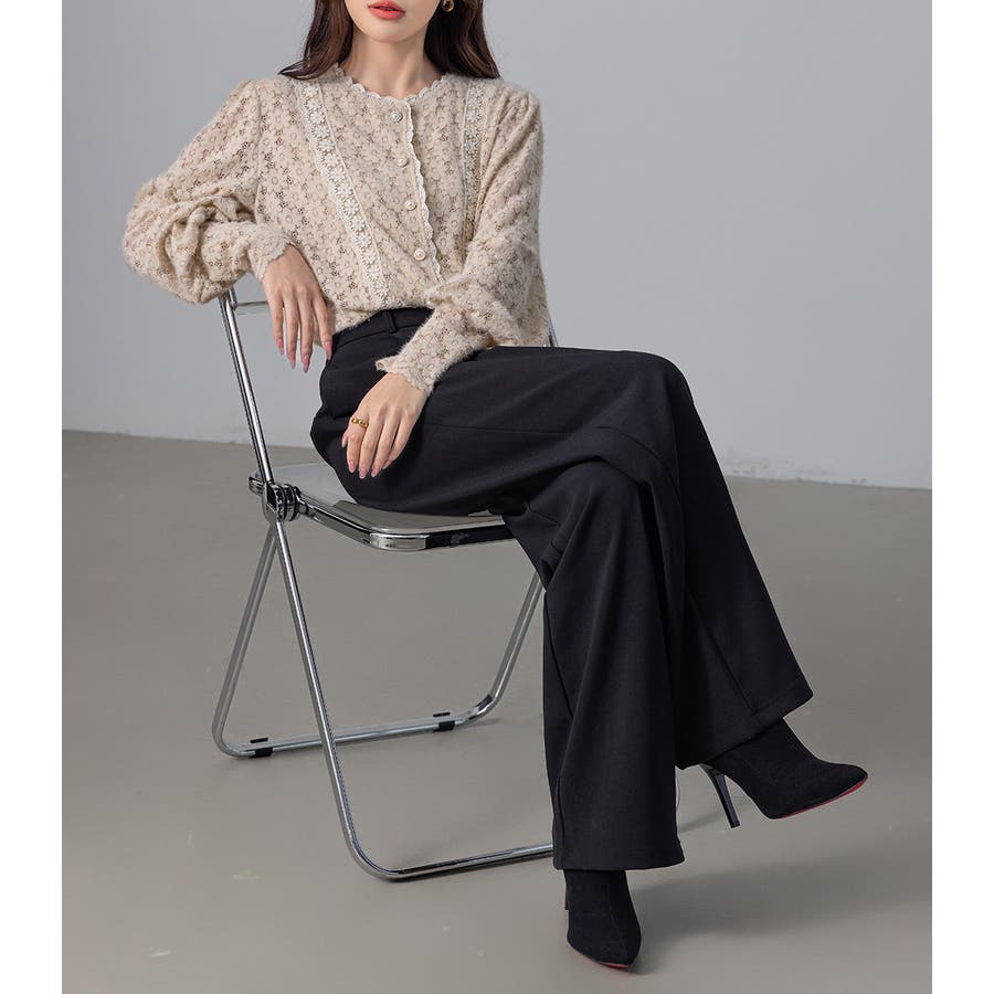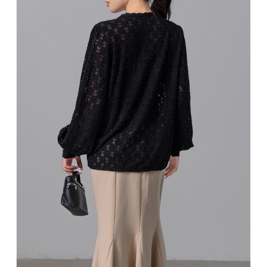 シンプルすぎない花柄レース調のニットでコーデが華やかに。