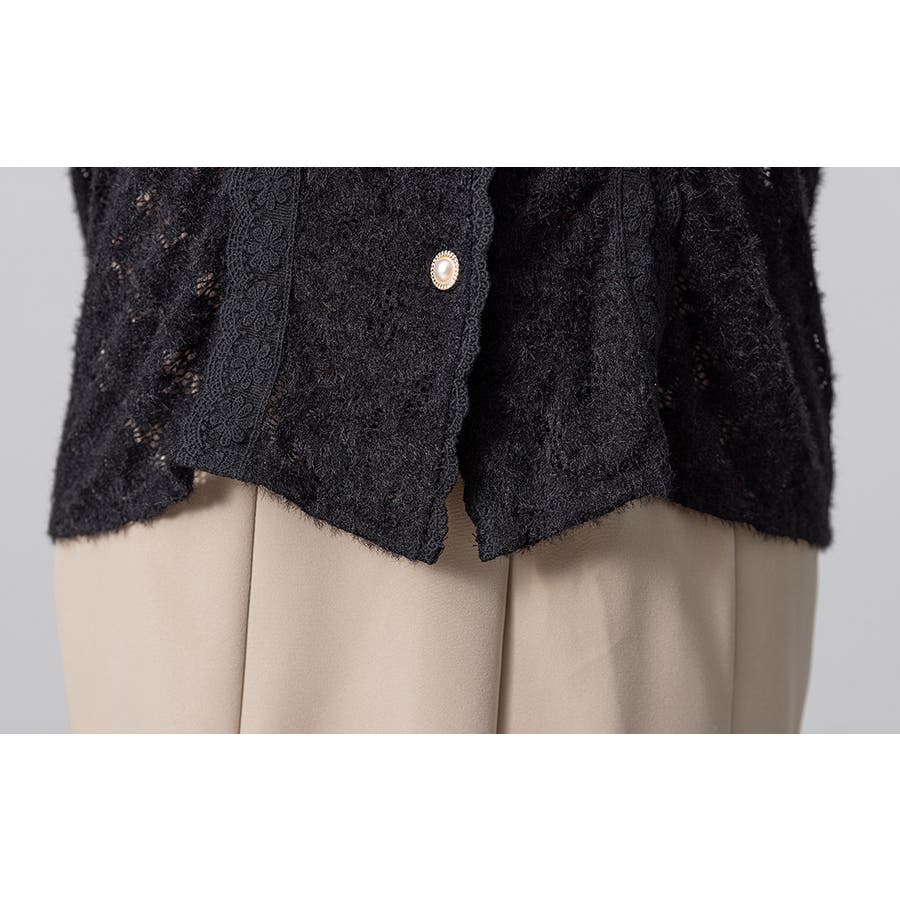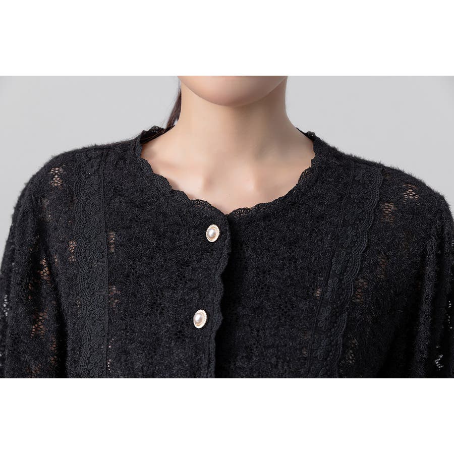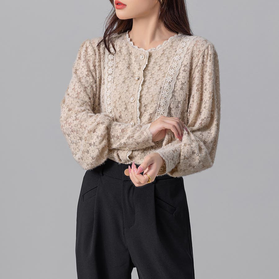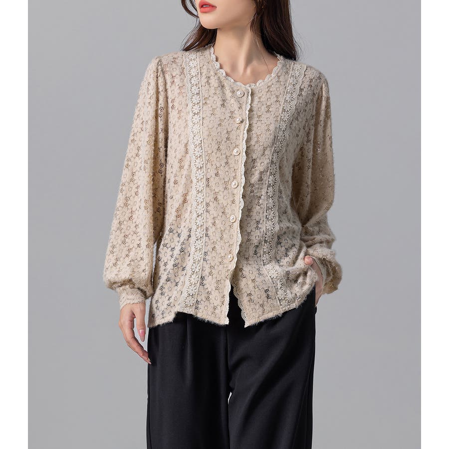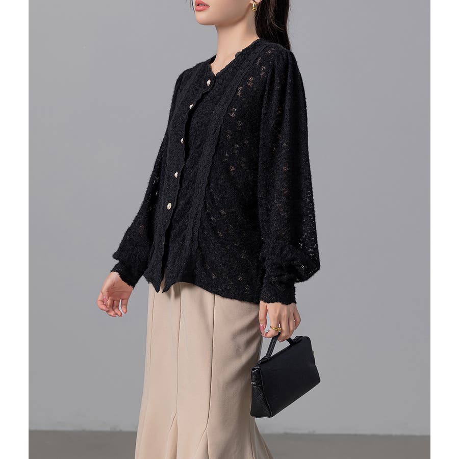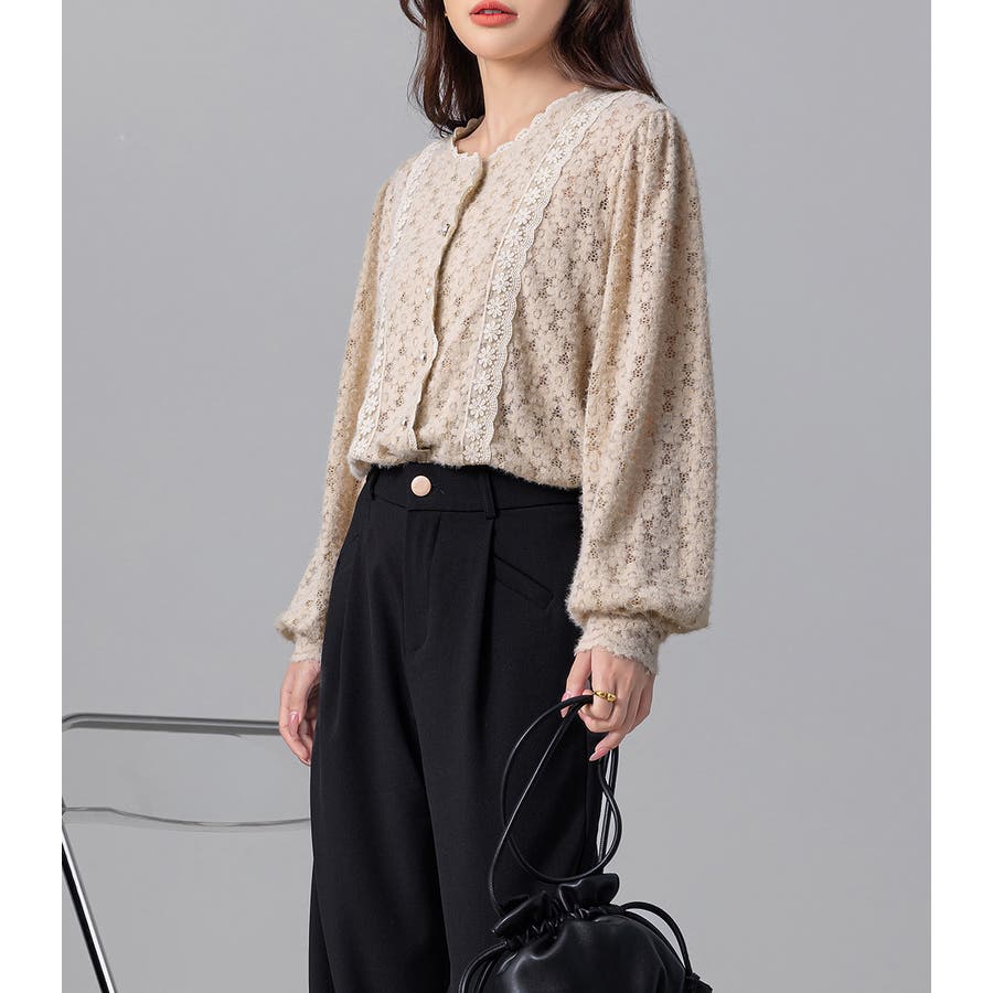 シンプルすぎない花柄レース調のニットでコーデが華やかに。