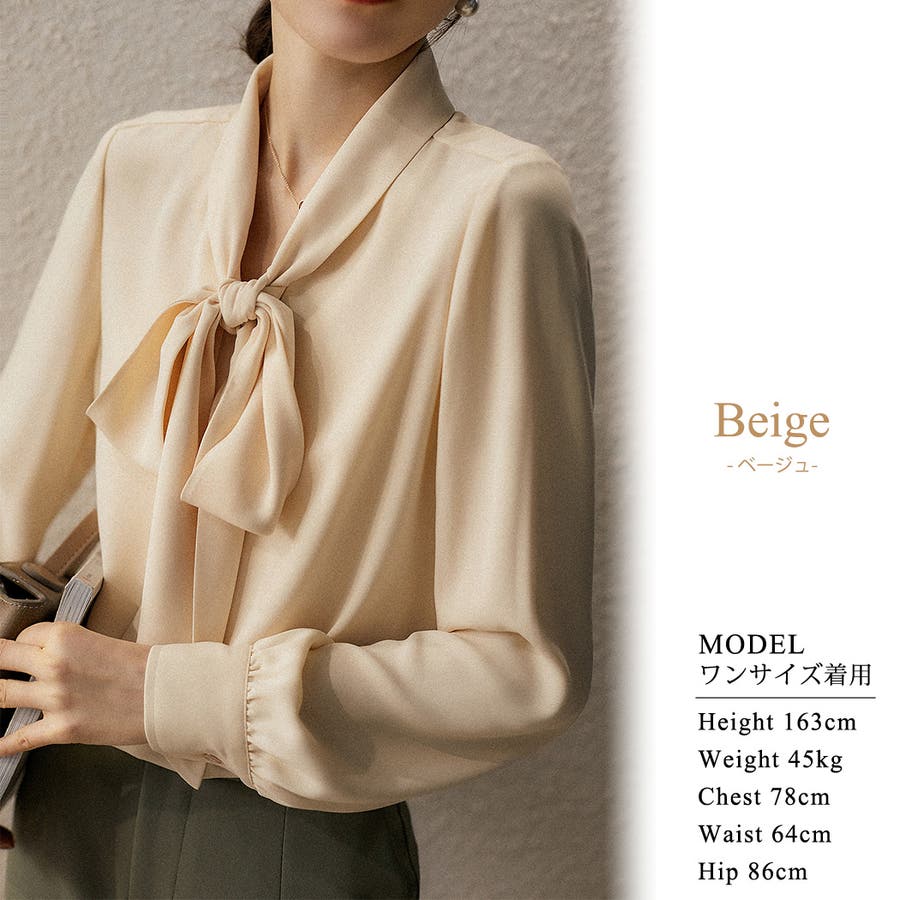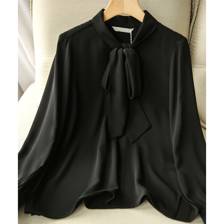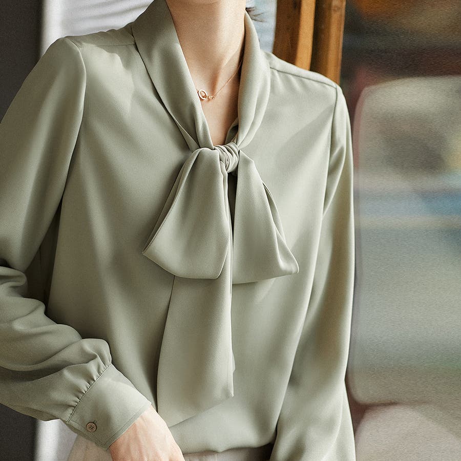 長袖 ボウタイ ブラウス