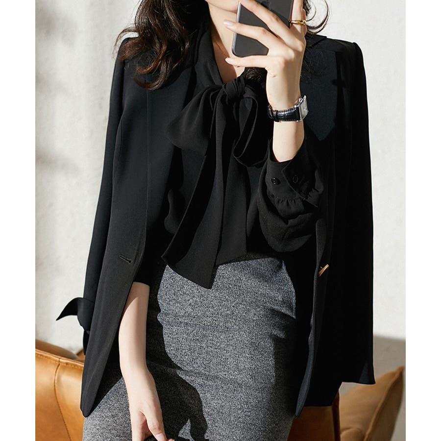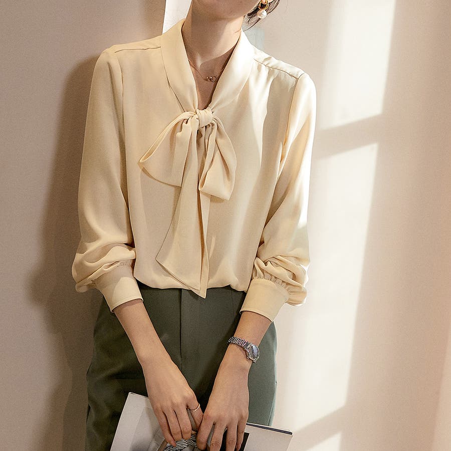 エレガントな着こなしボウタイブラウス