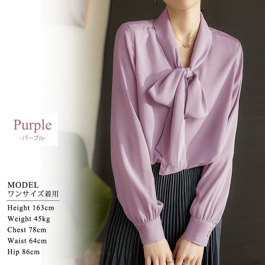 ただタイの使い方が難しく、リボン結びもバランスが取れず苦戦してしまうのが難点。さん (20代 / 女性 / 身長145~150cm / 体重55~59kg)購入アイテム:サイズ ワンサイズカラー パープルいつものトップスサイズ:Mサイズ感:少し大きい - 生地が安っぽい