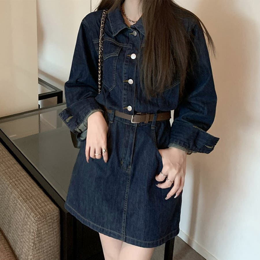羽織りや重ね着をデニムワンピにプラスするだけで、シーズンレスな着回しコーデに。