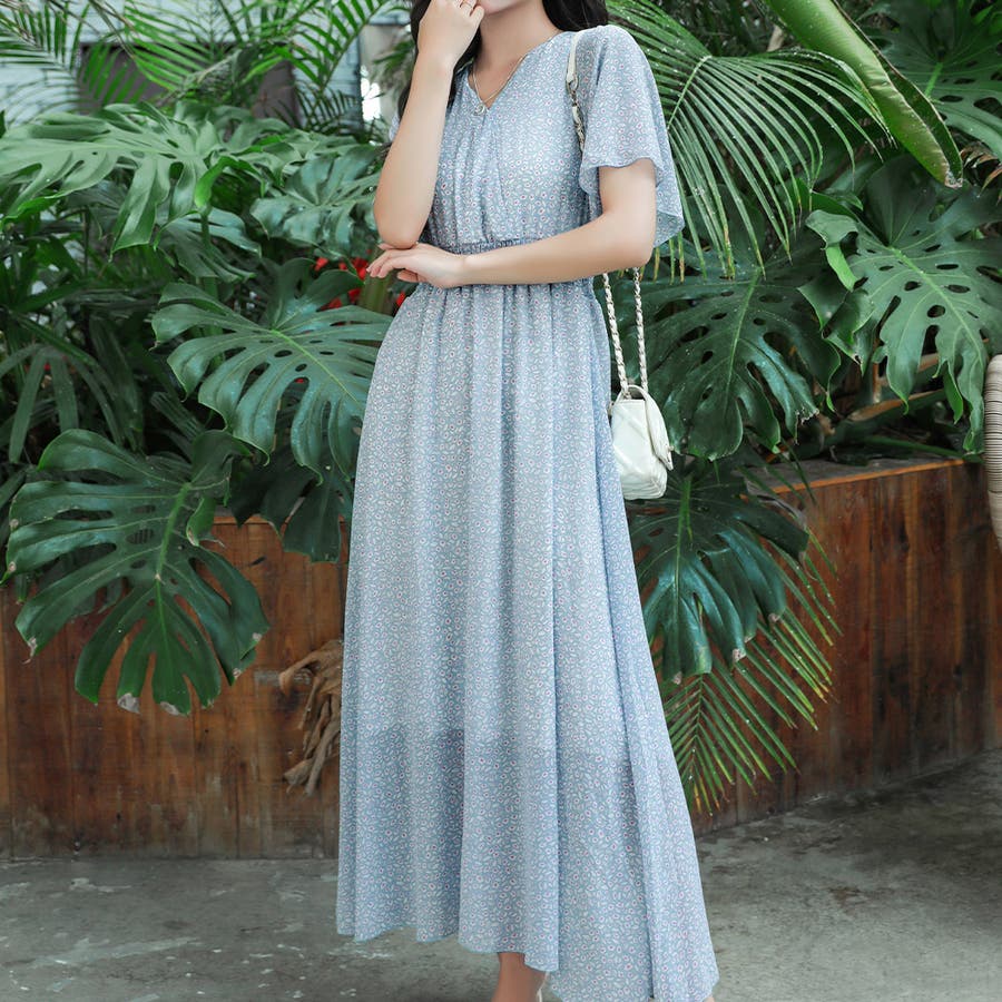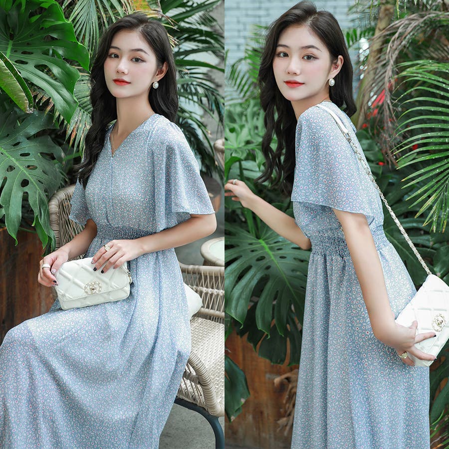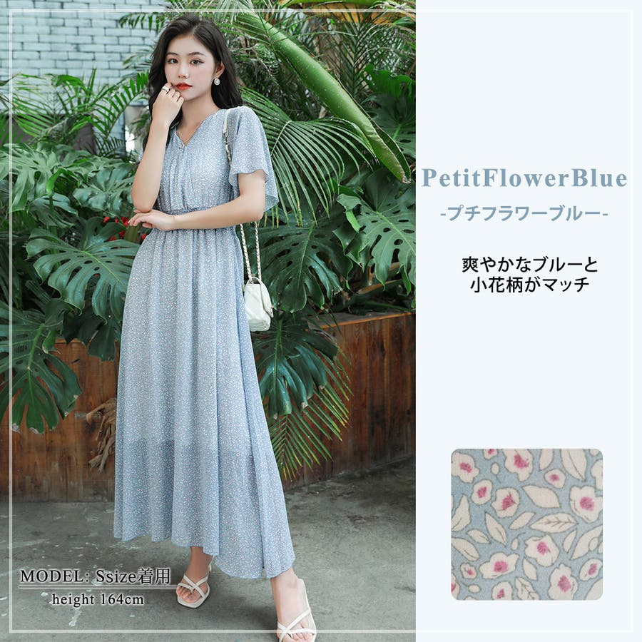 【プチフラワーブルー】半袖 ワンピース Aライン