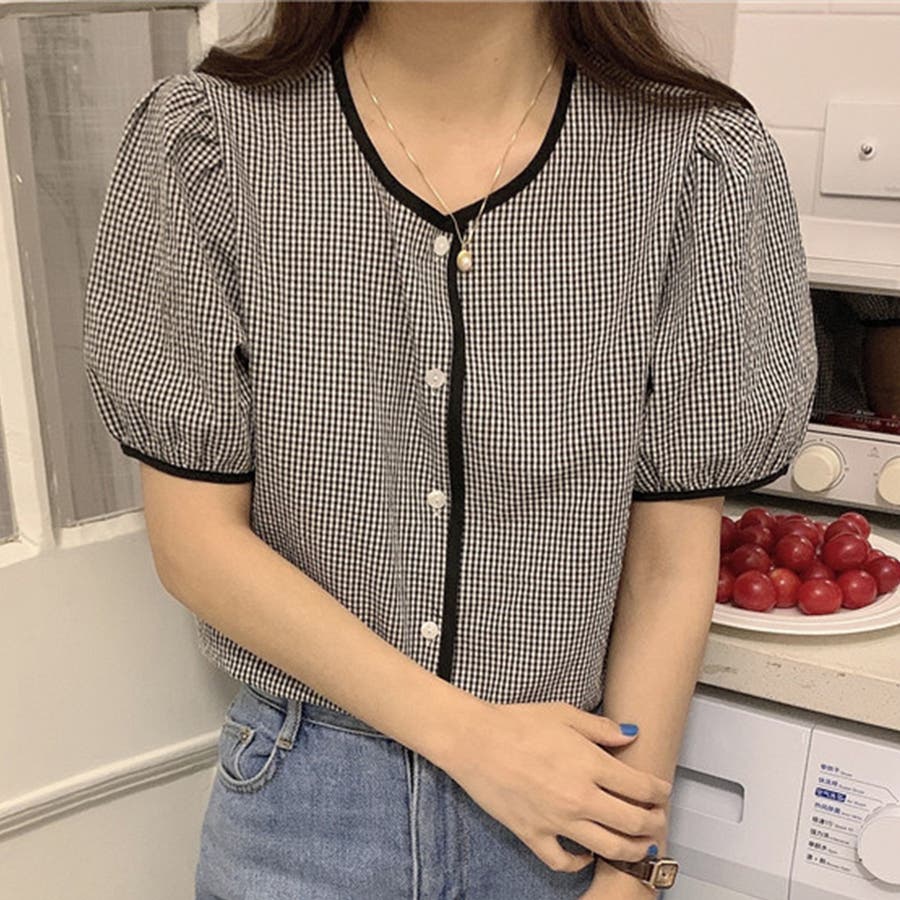 ギンガムチェック柄ブラウス