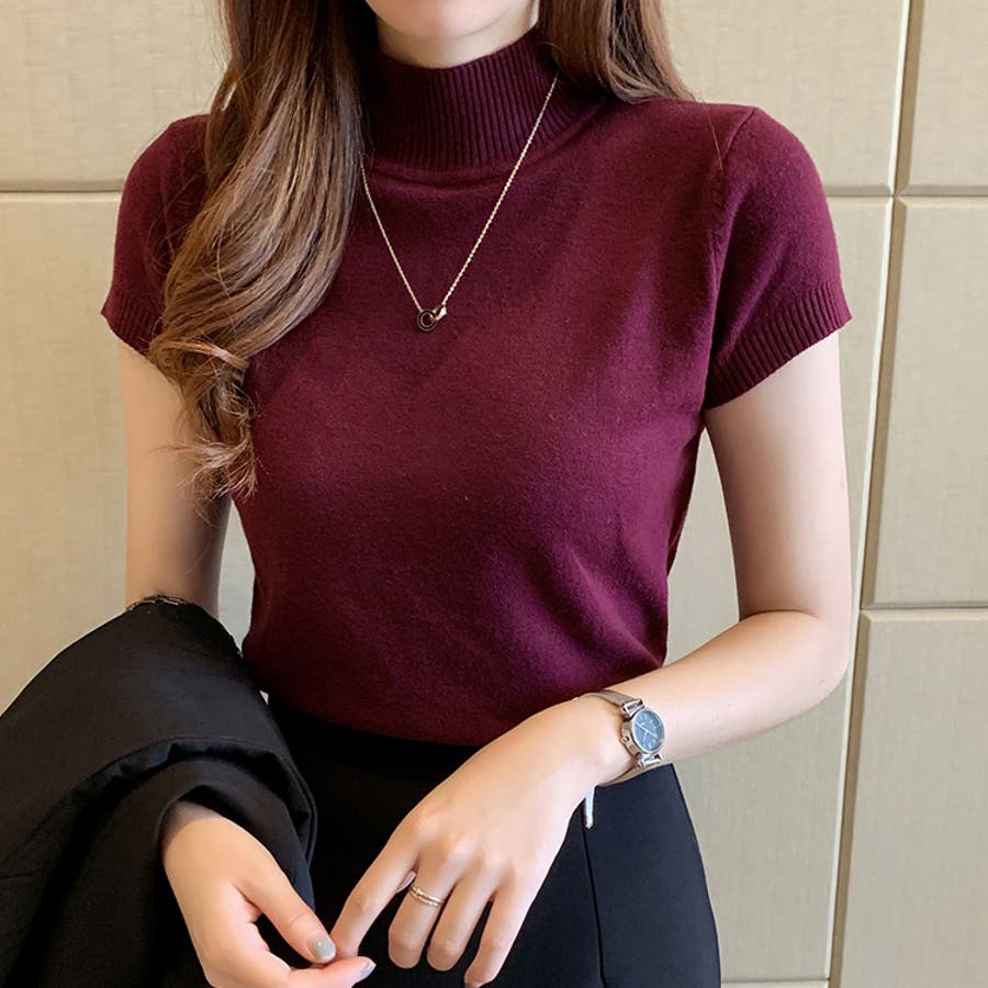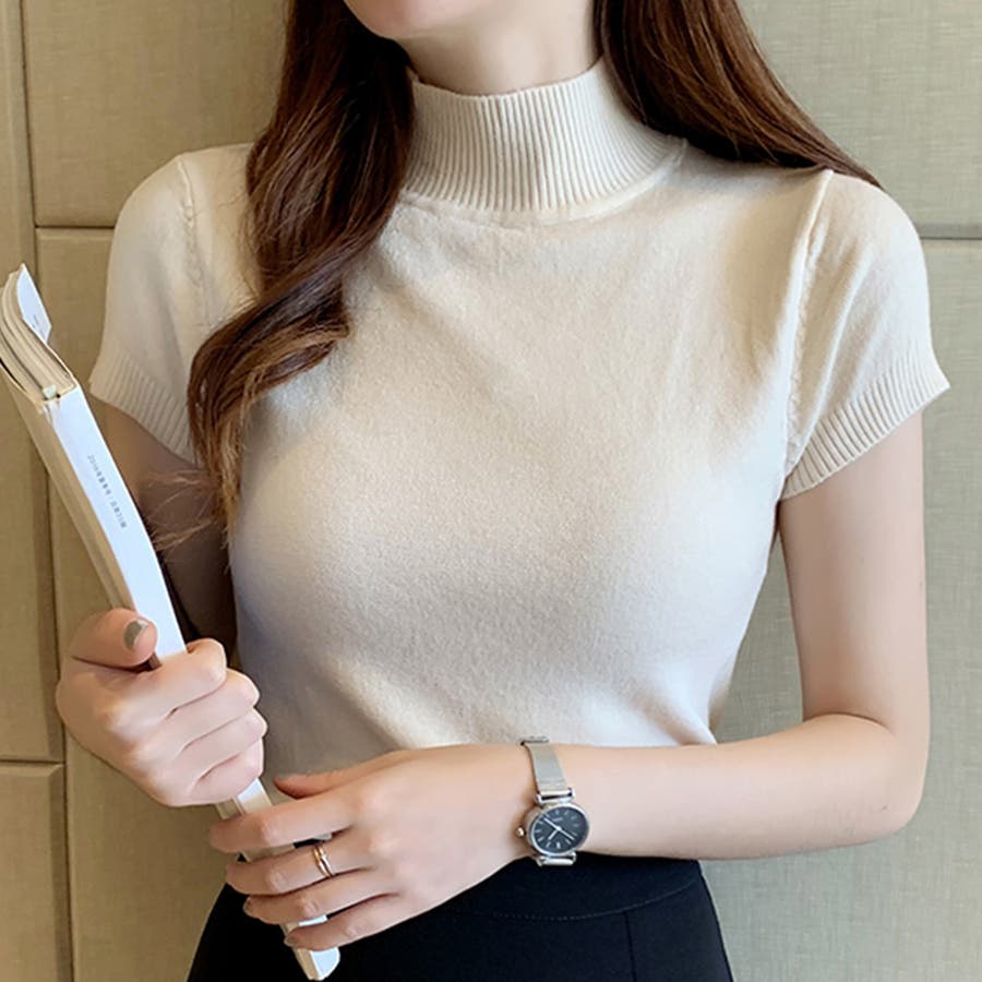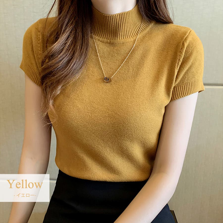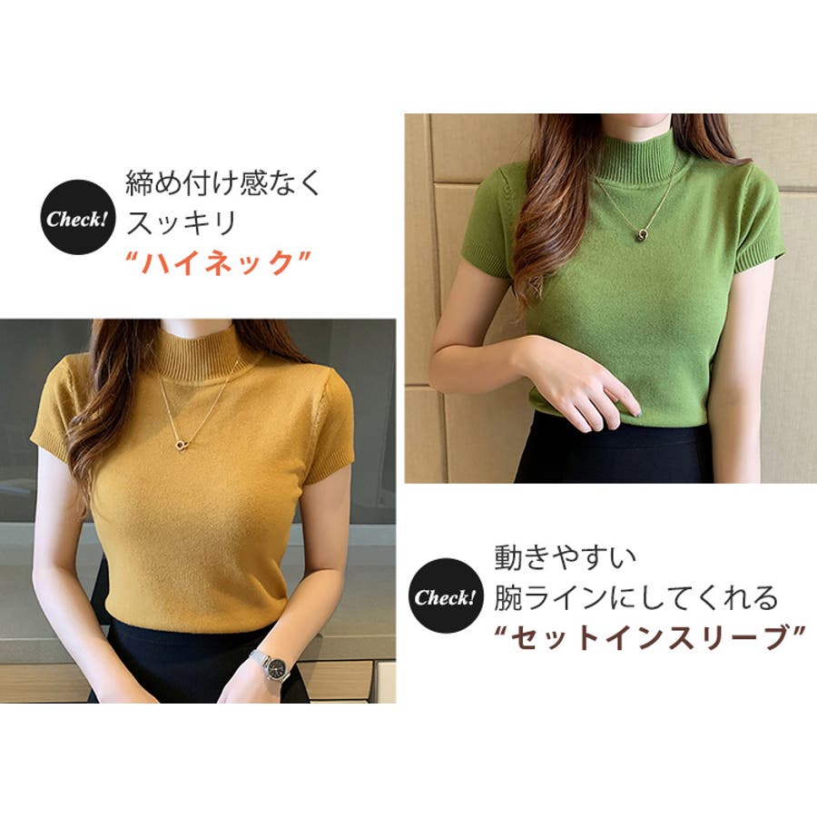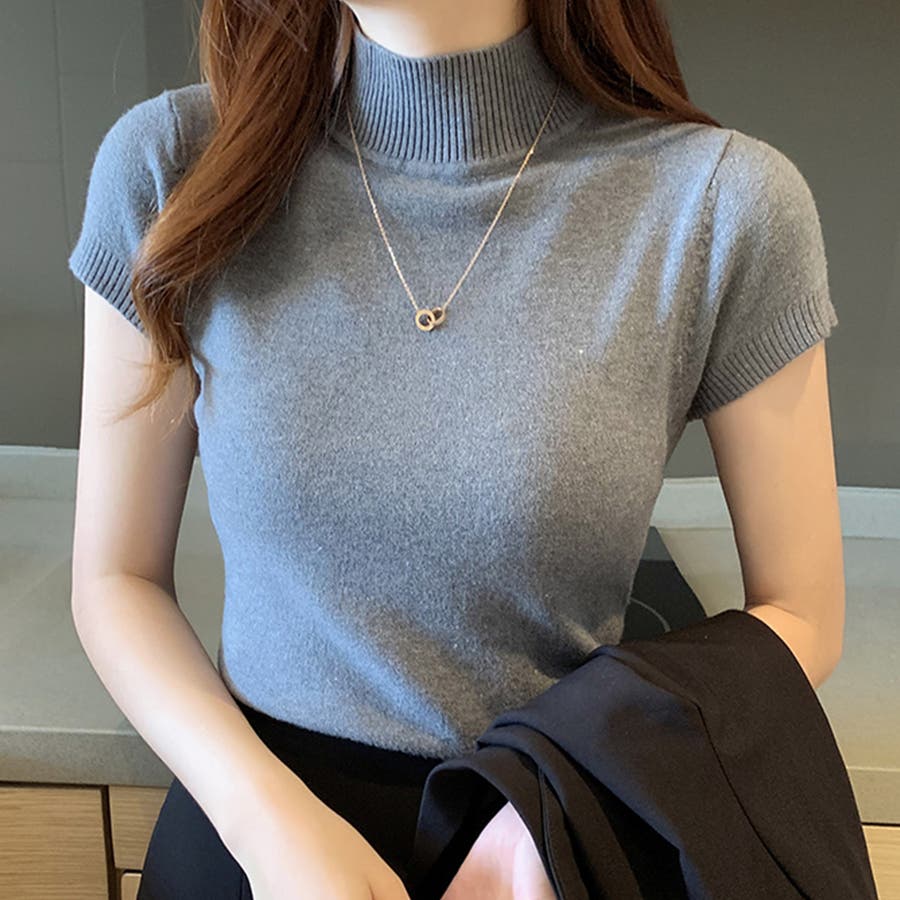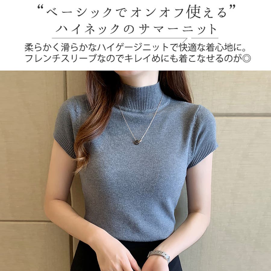 サマーニット 半袖 ハイネック