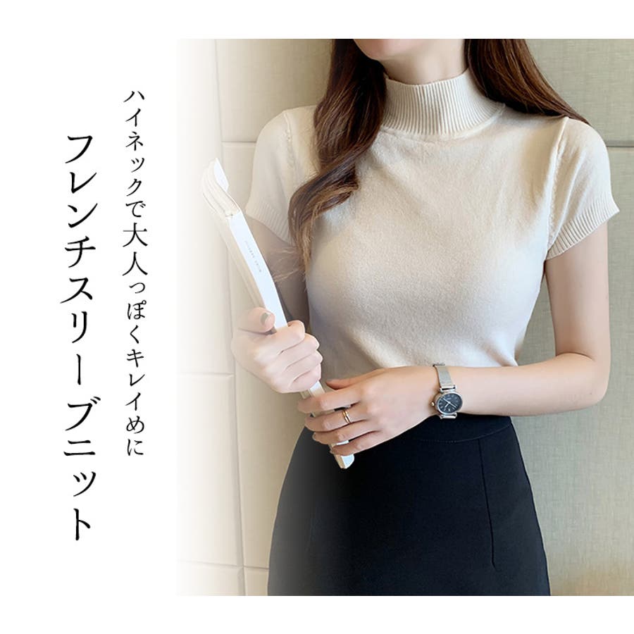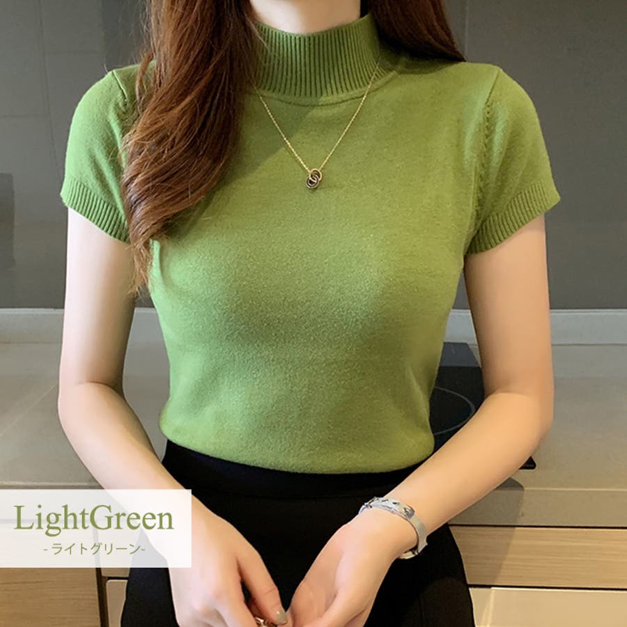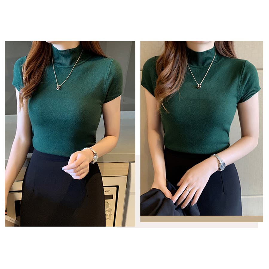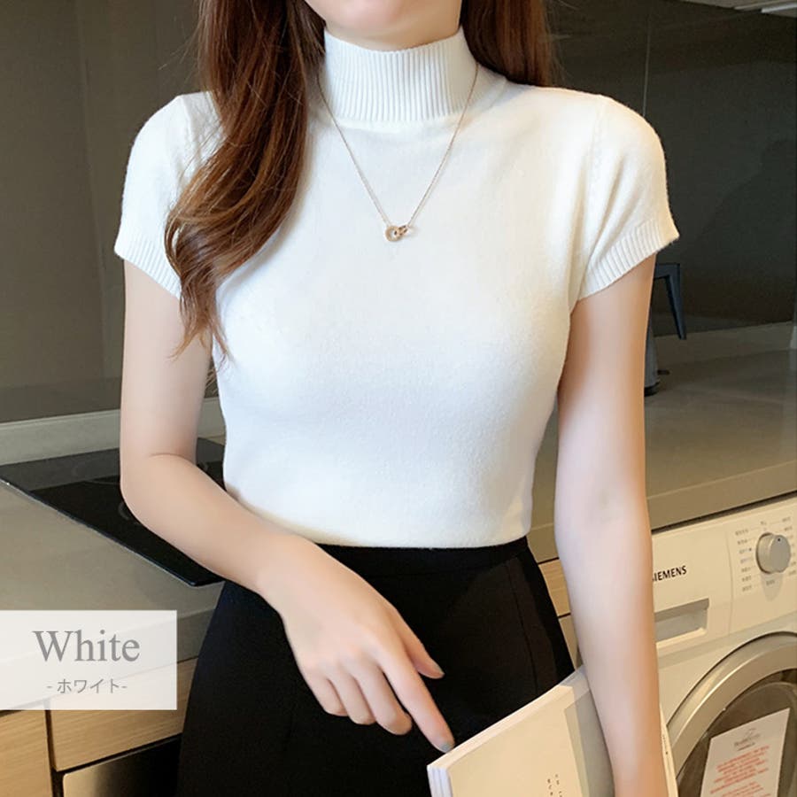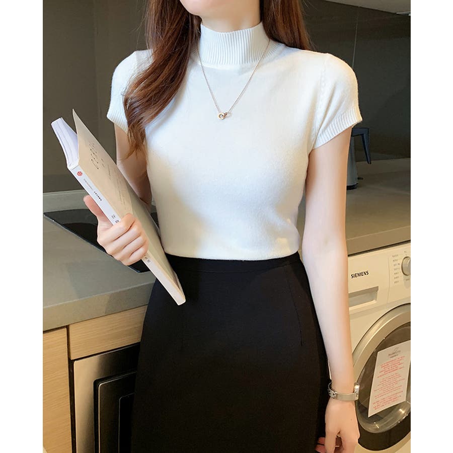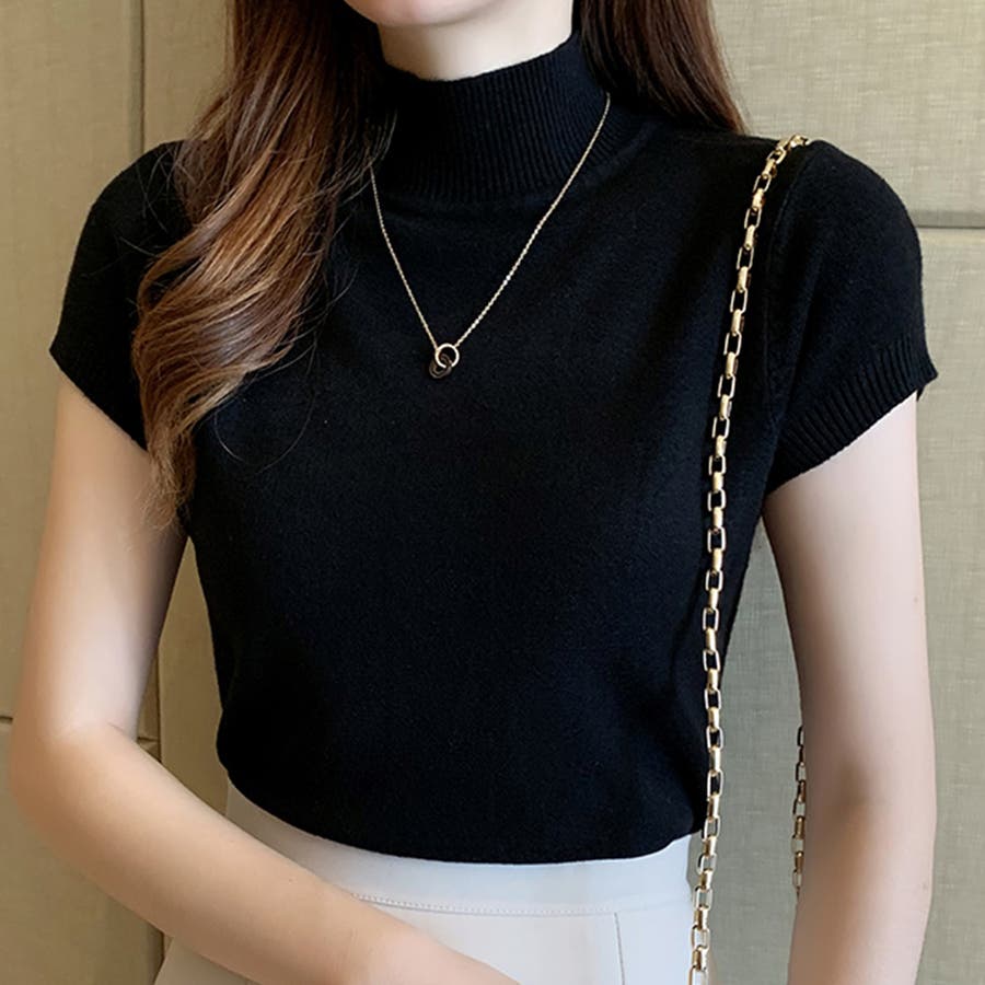 サマーニット 半袖 ハイネック