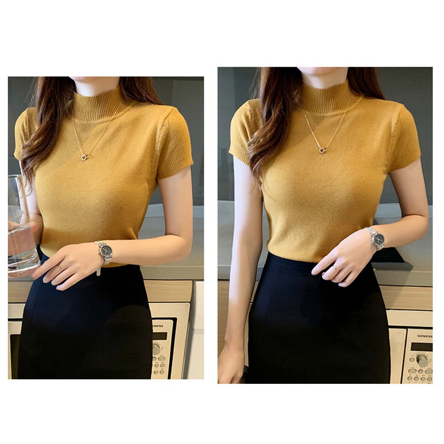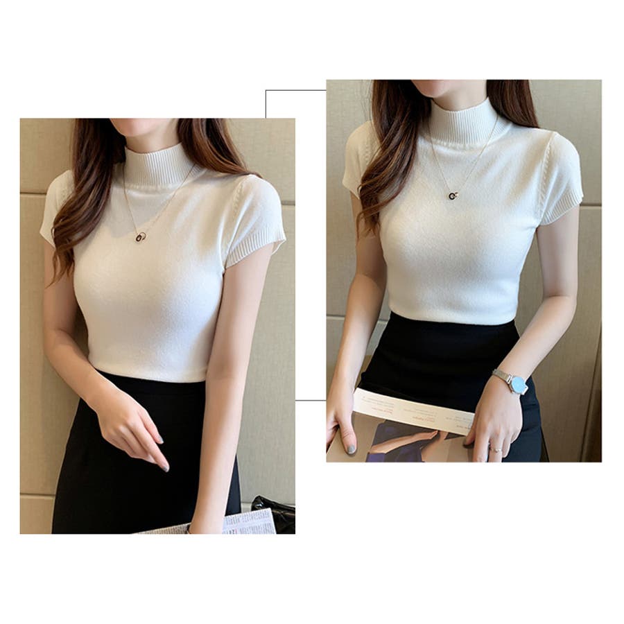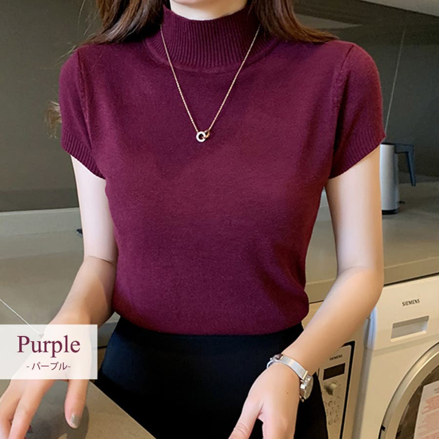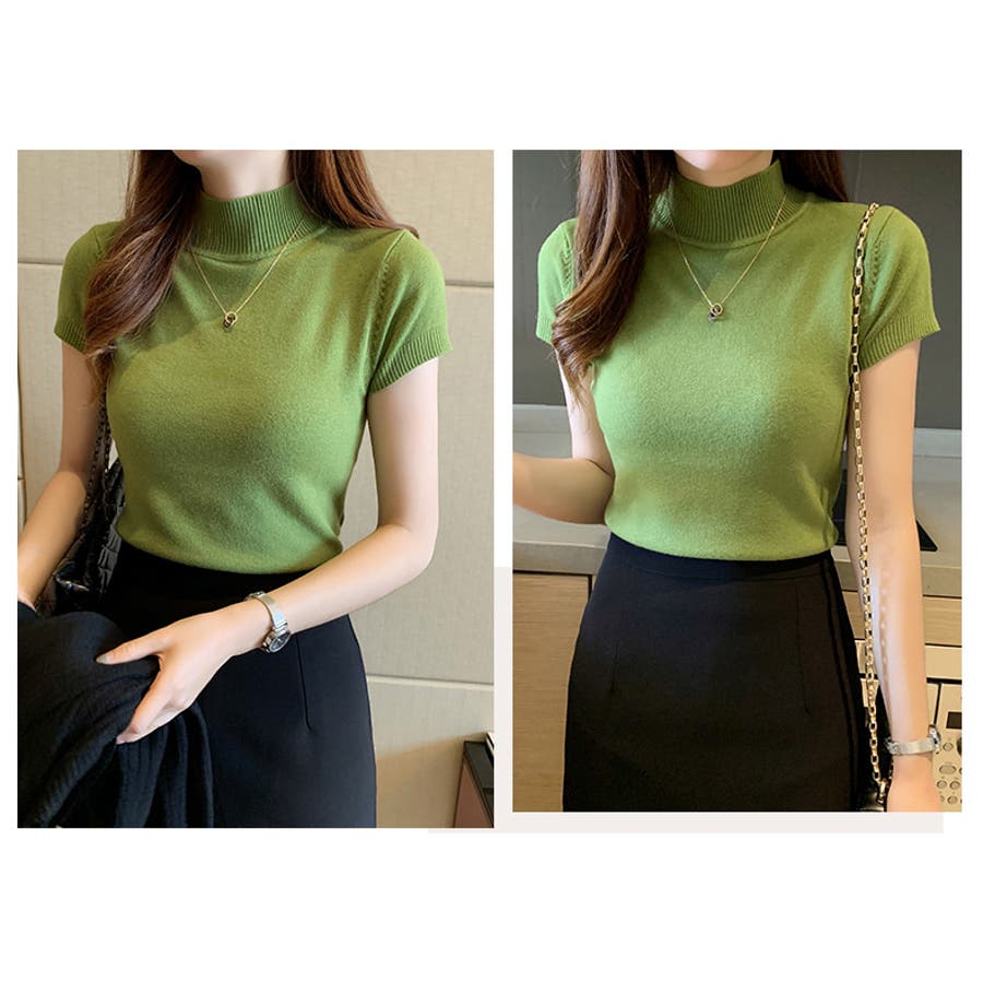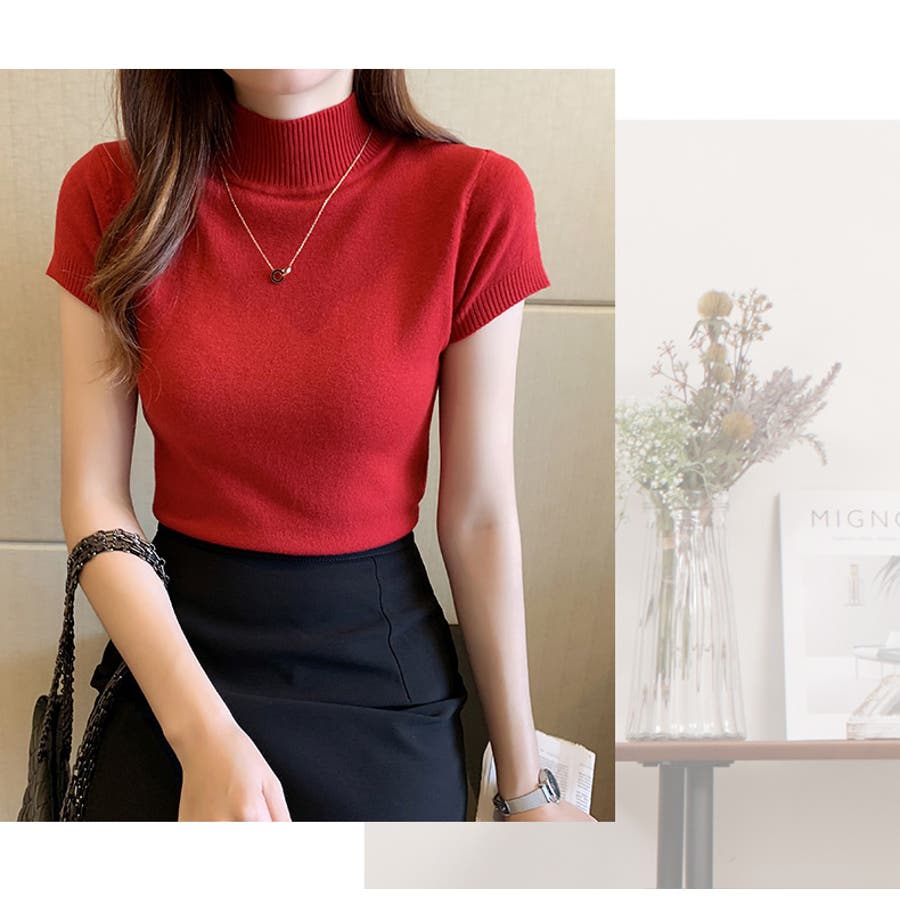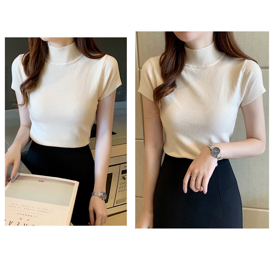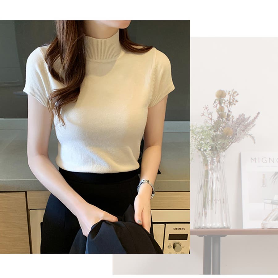 サマーニット 半袖 ハイネック