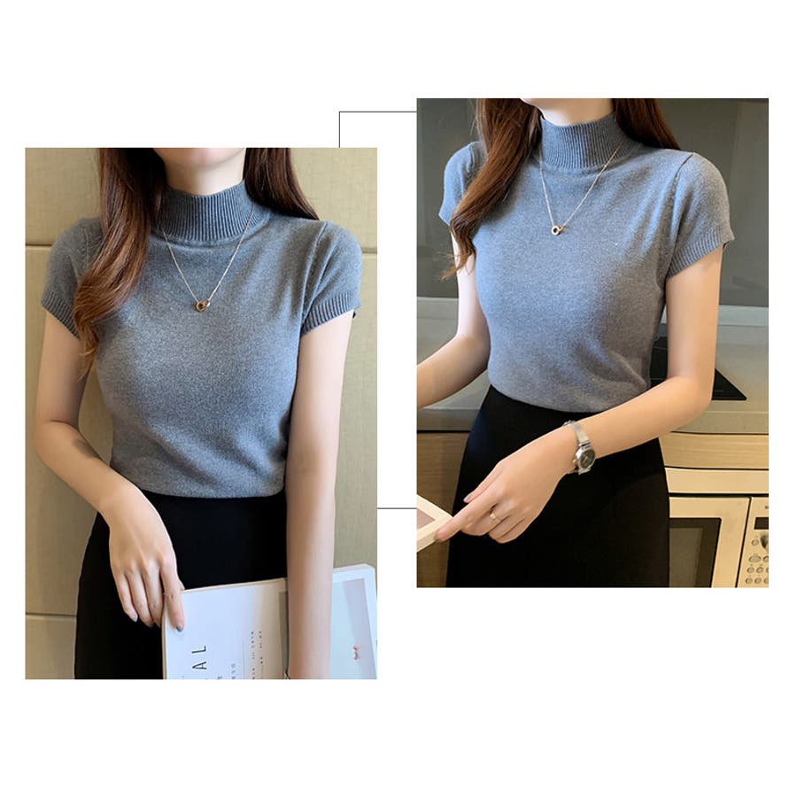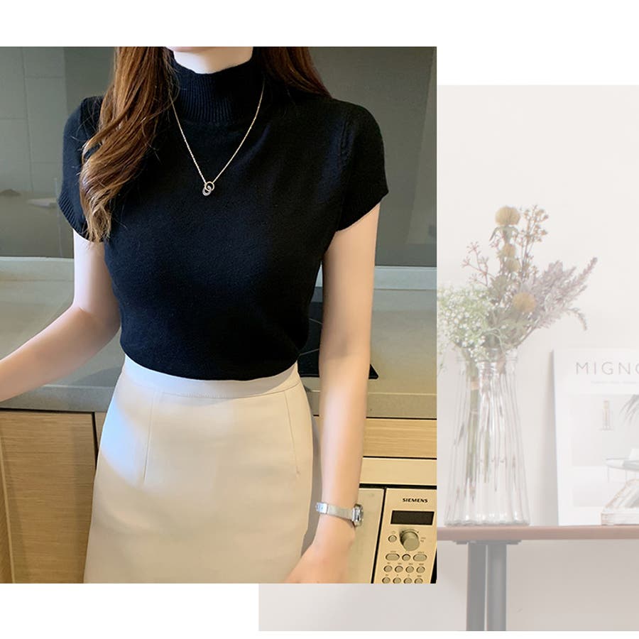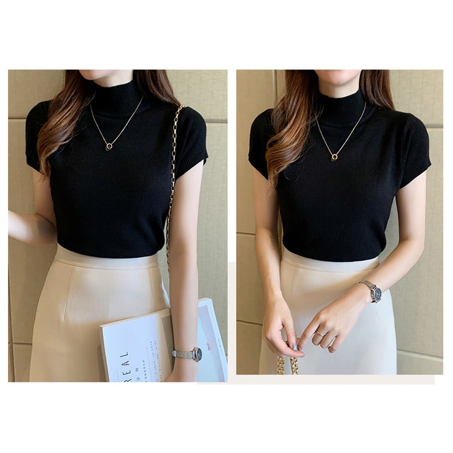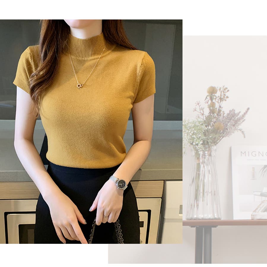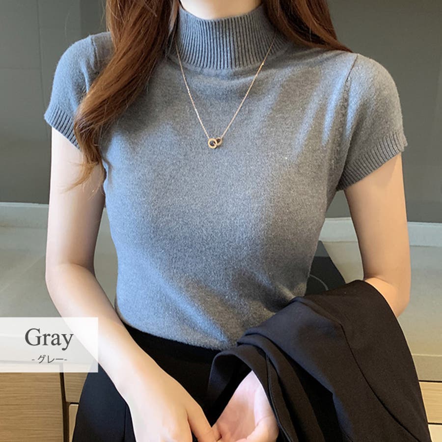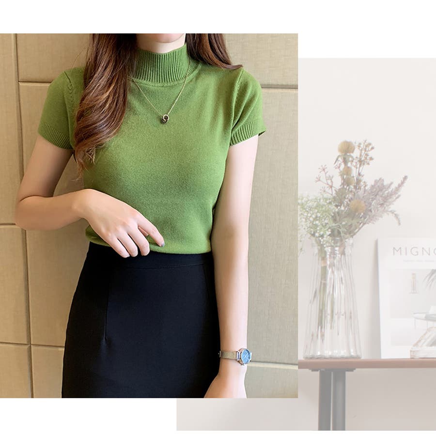 サマーニット 半袖 ハイネック