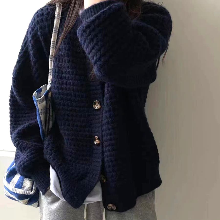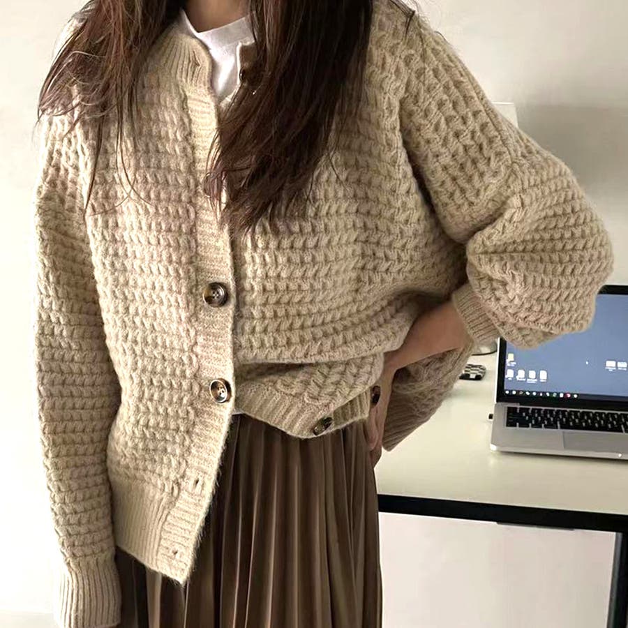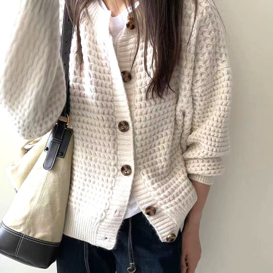 着こなしやすいローゲージ編みで、秋冬ムードたっぷり。