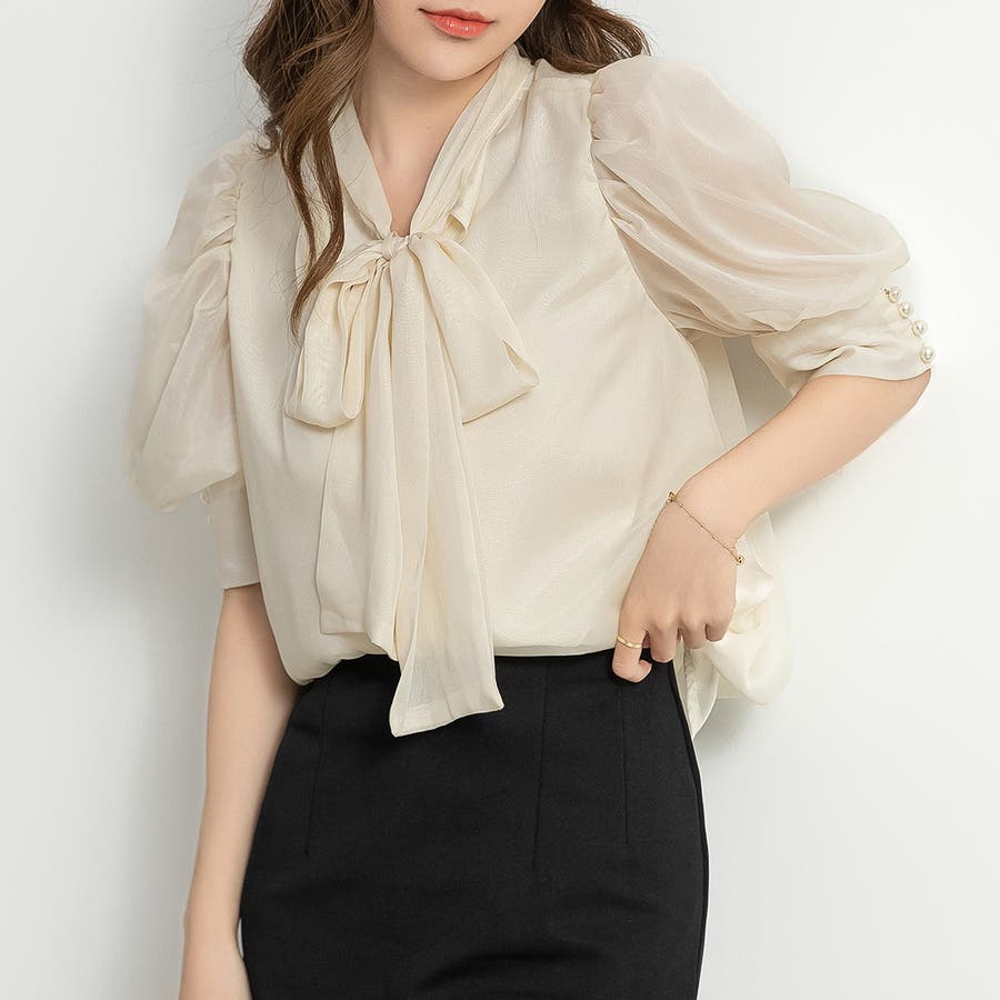 旬なシアー素材を使用した大人ガーリーなブラウス。