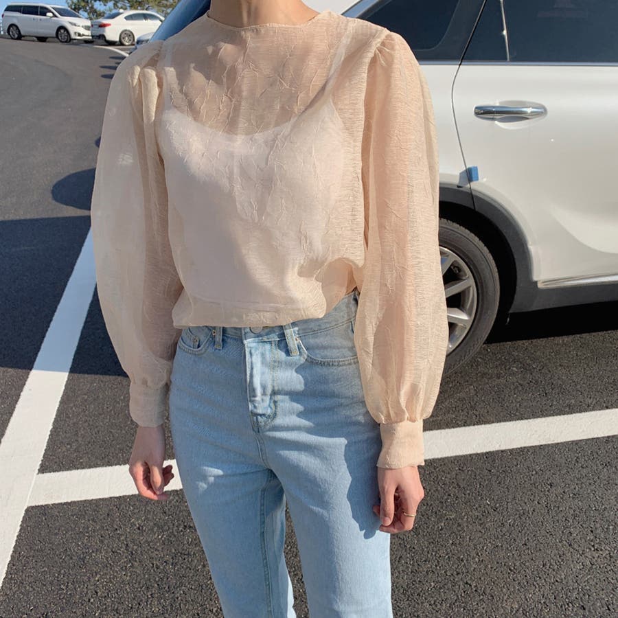 バルーンスリーブシアーブラウス