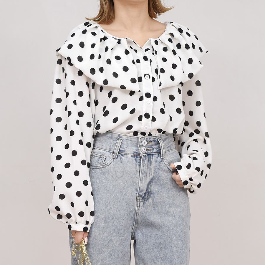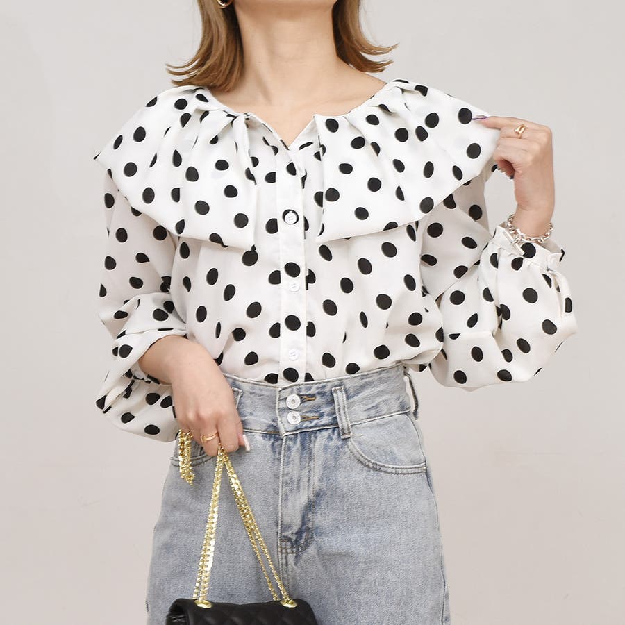 タック入りのフリル襟でフェミニンな華やかさをプラス。