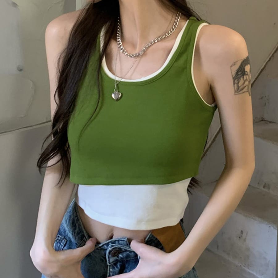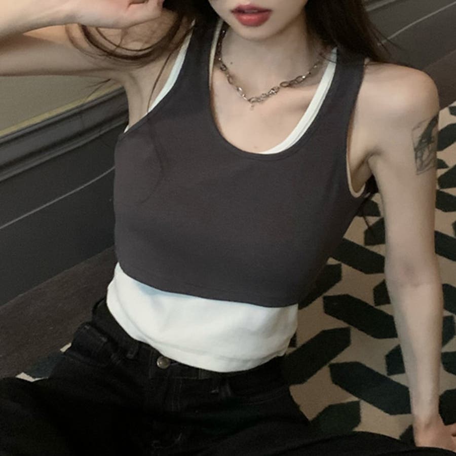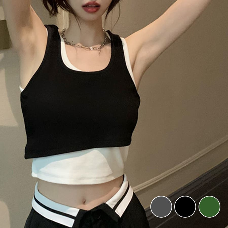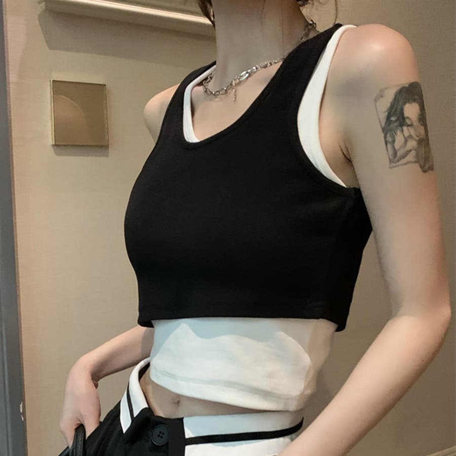 縫い付けられた二枚重ねトップスのためコーデが簡単♪
