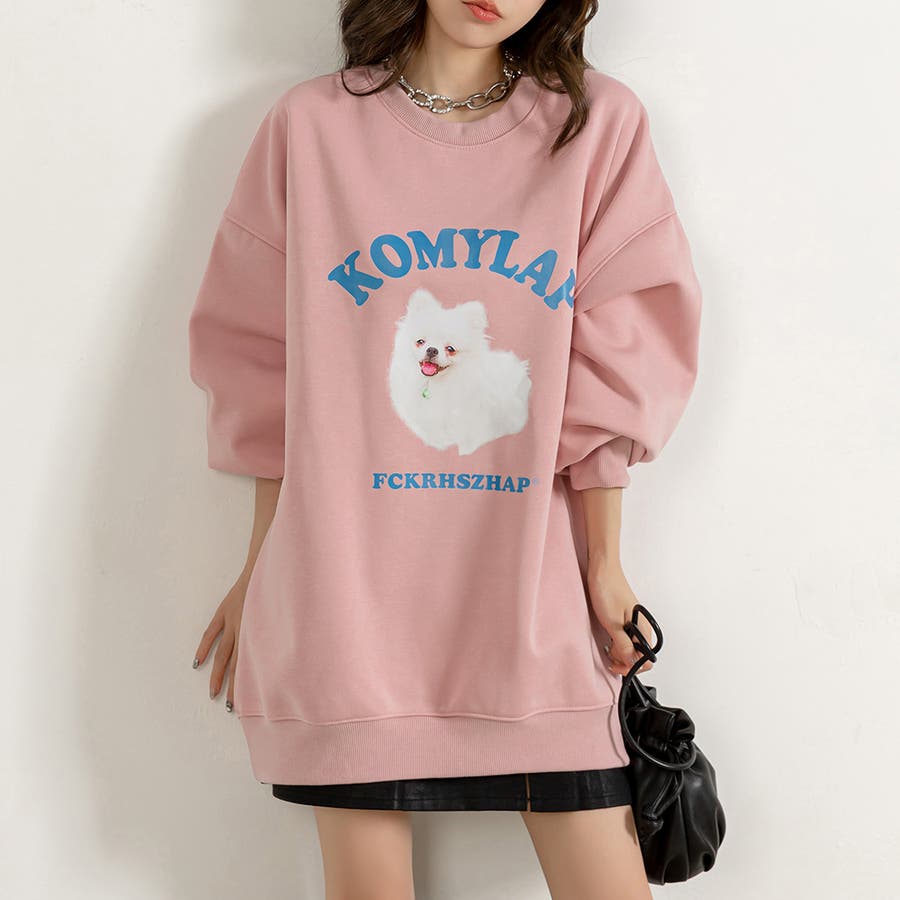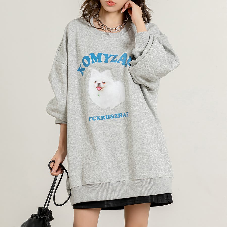 可愛いポメラニアンのプリントデザインが目を惹くトレーナー。
