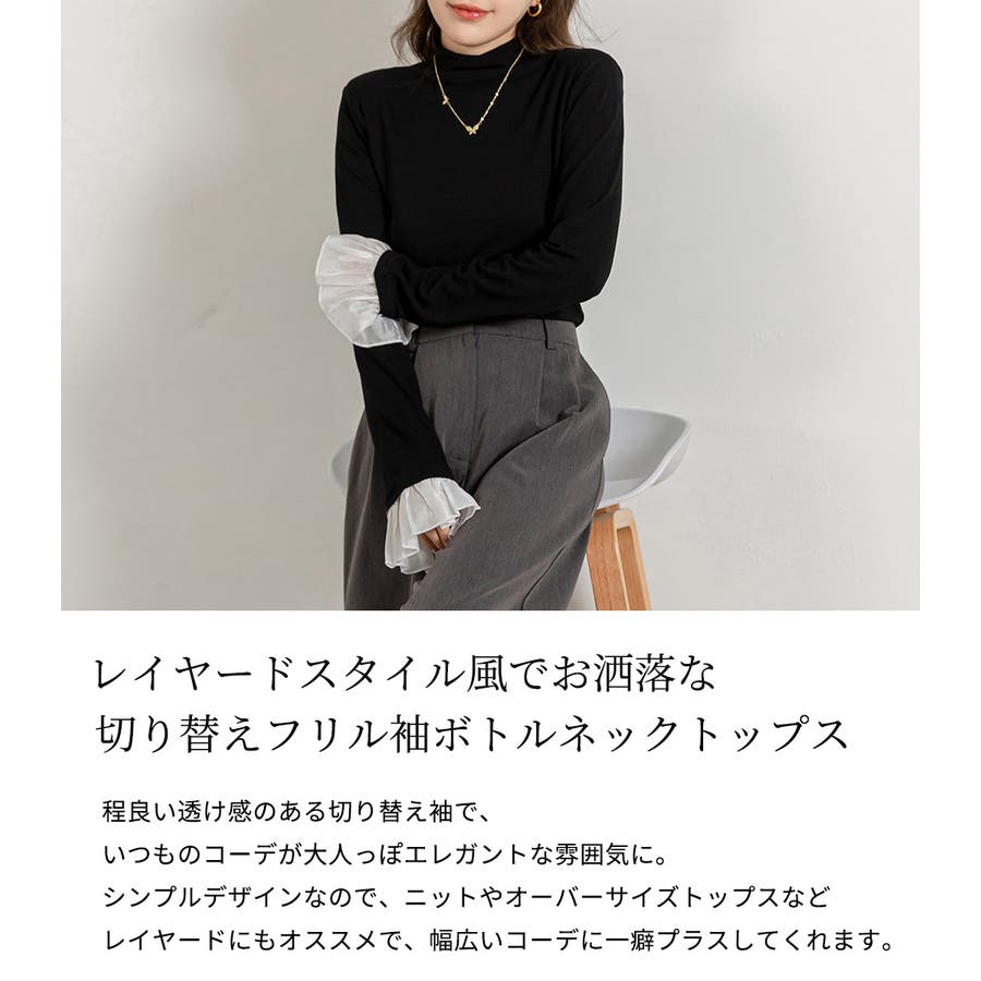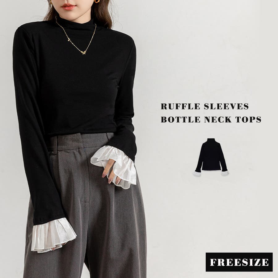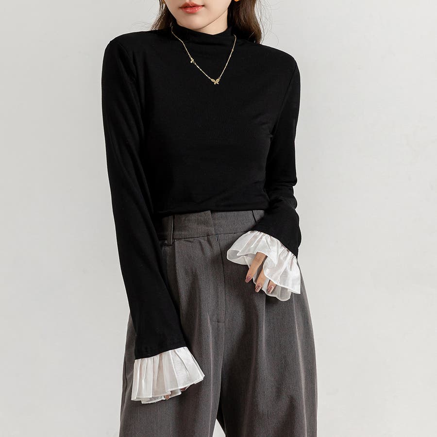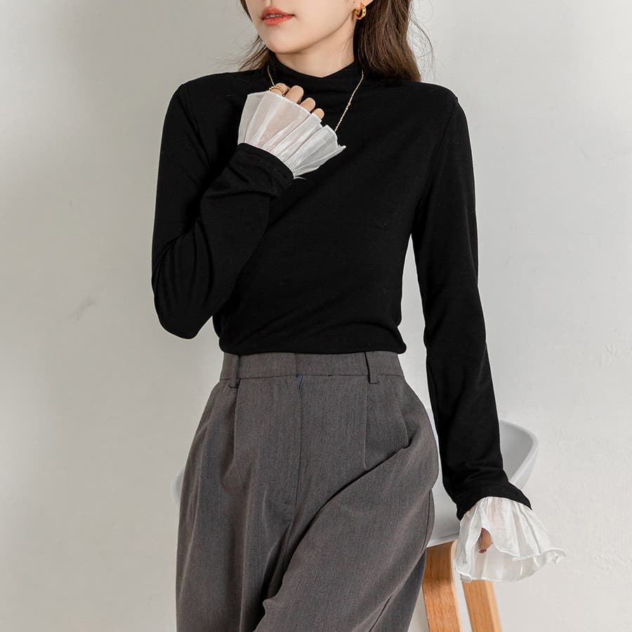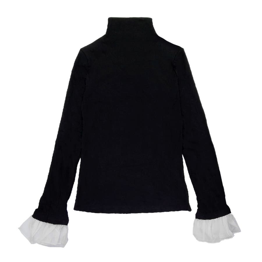切り替えフリル袖ボトルネックトップス