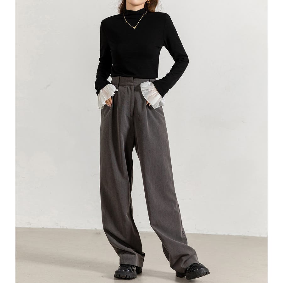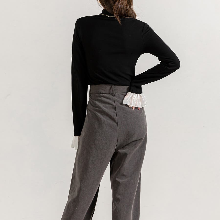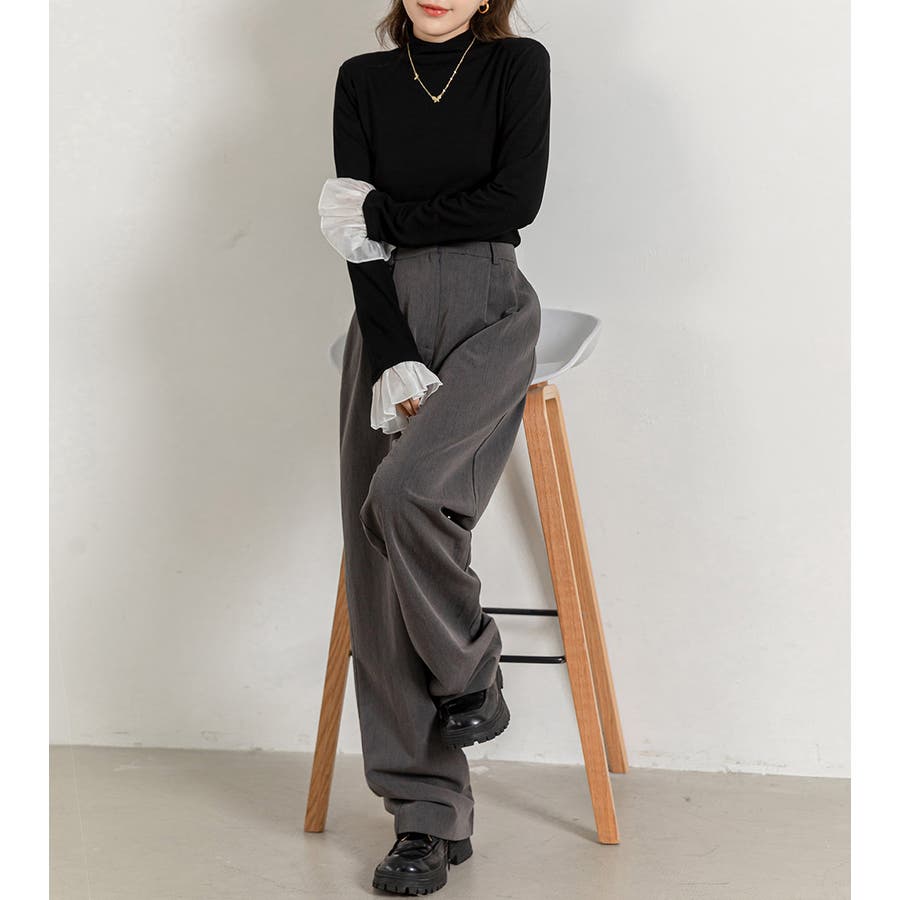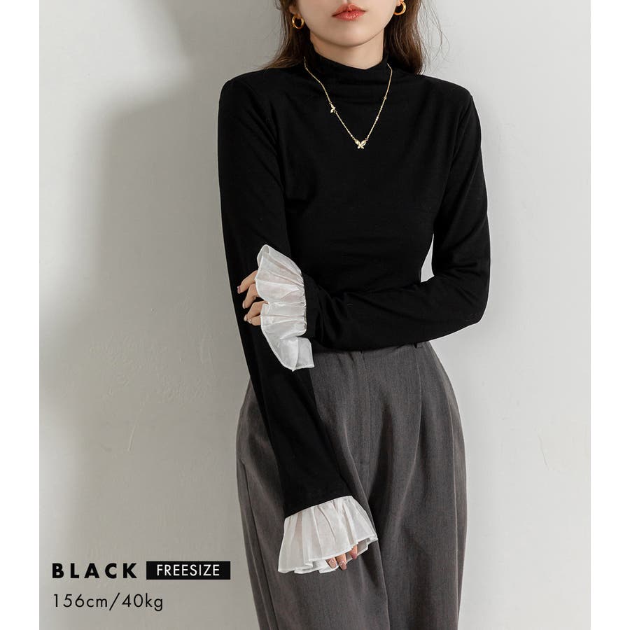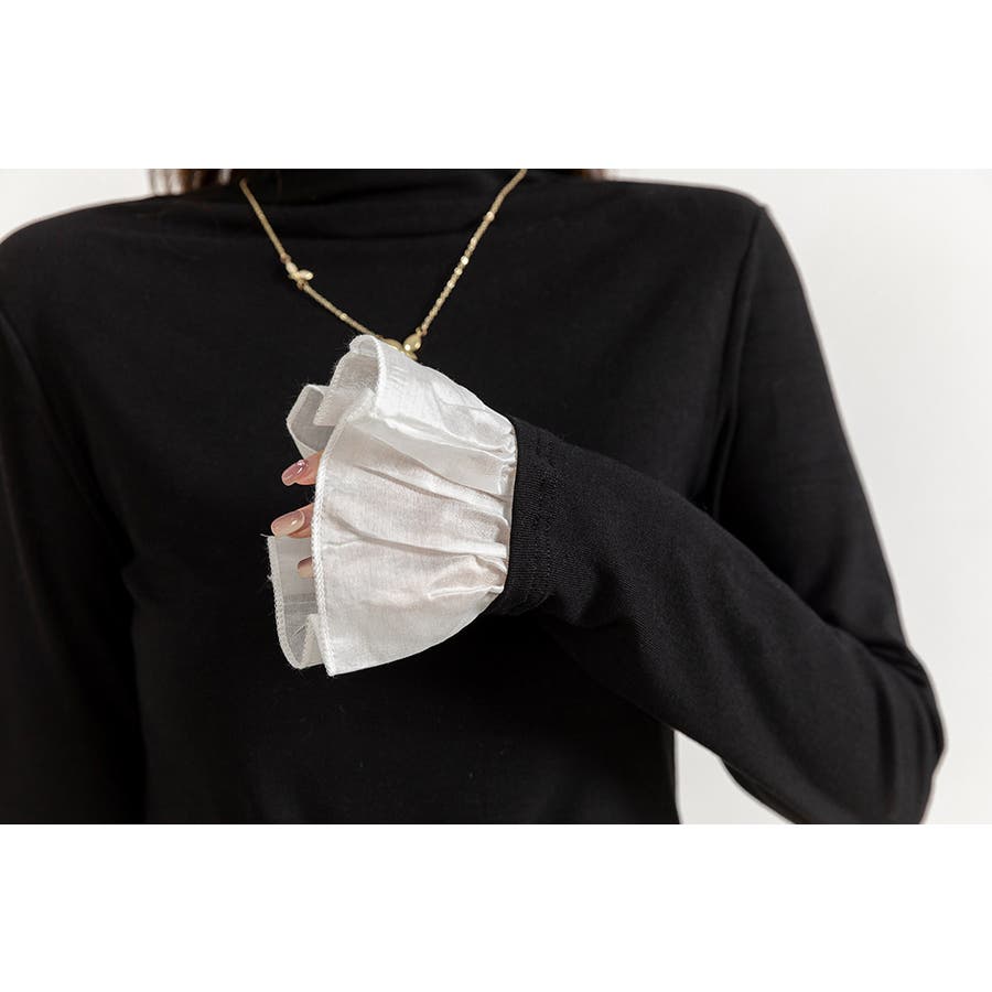 切り替えフリル袖ボトルネックトップス