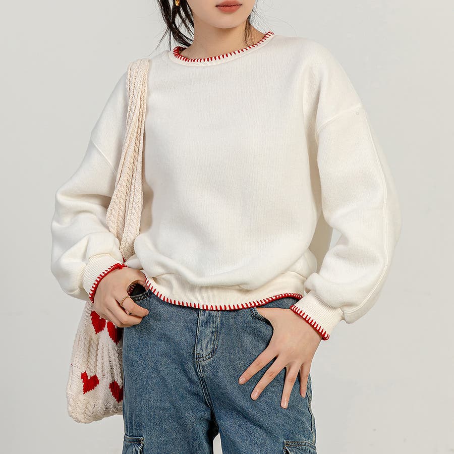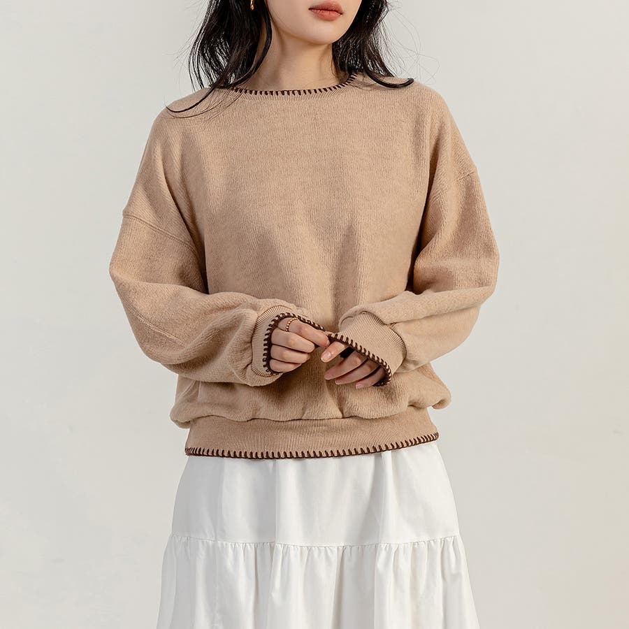 起毛生地のステッチプルオーバー