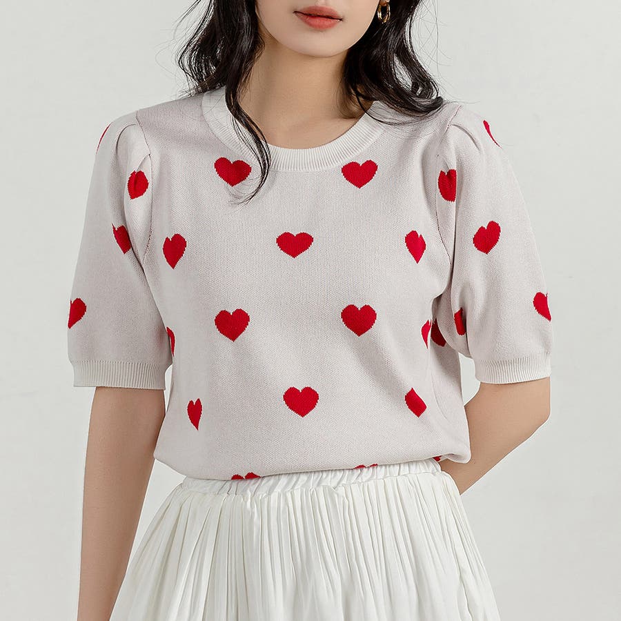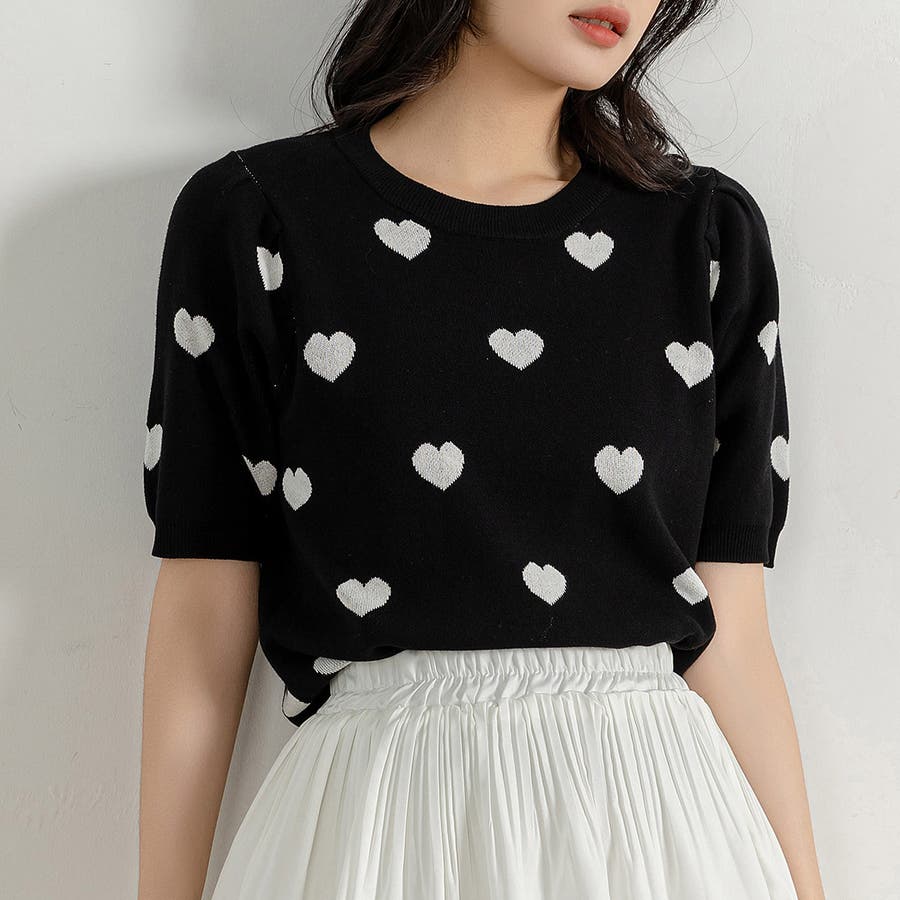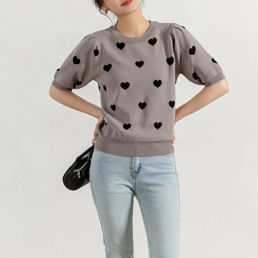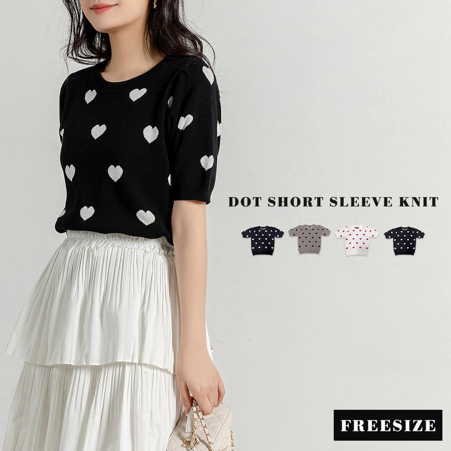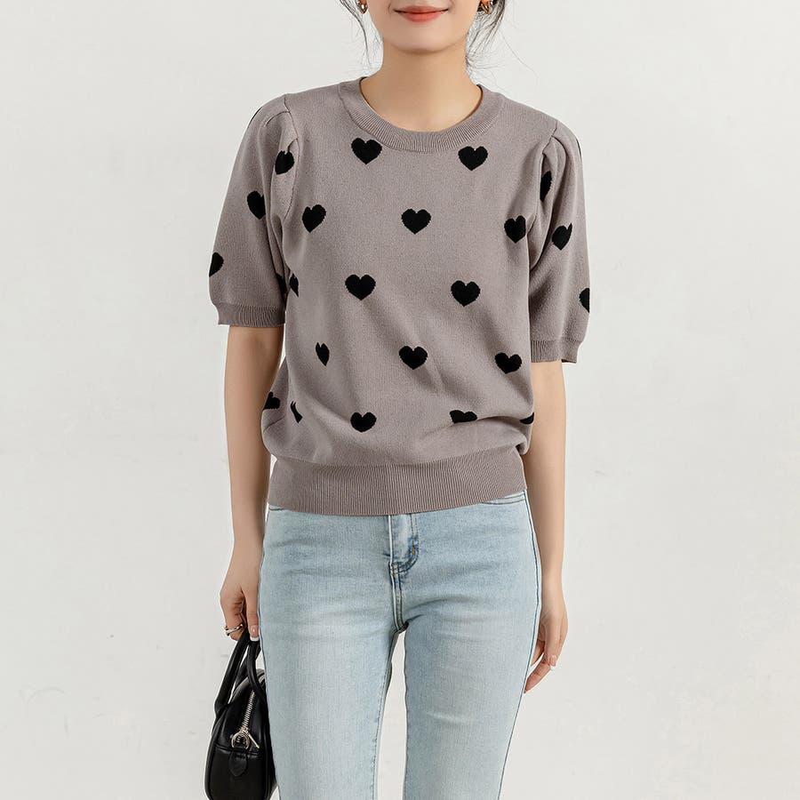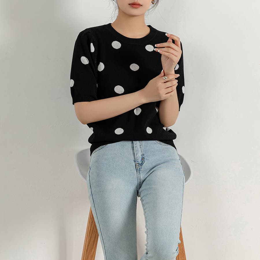 コーデのアクセントになるドット柄orハートドット柄トップス。