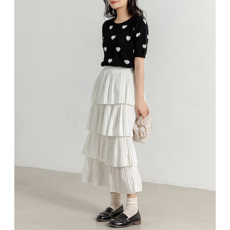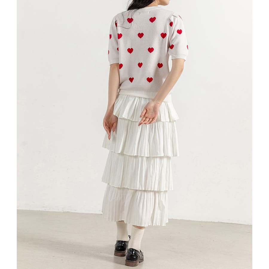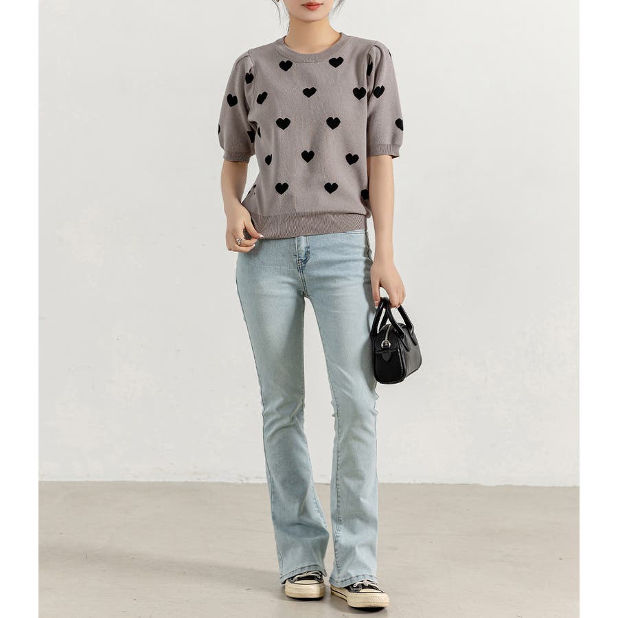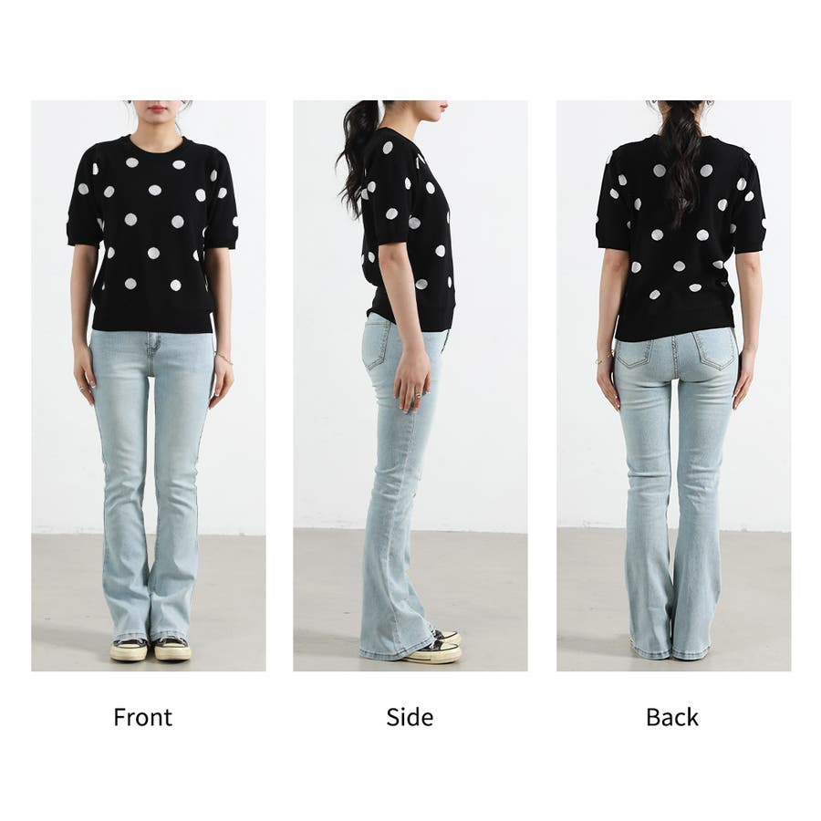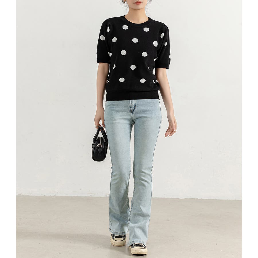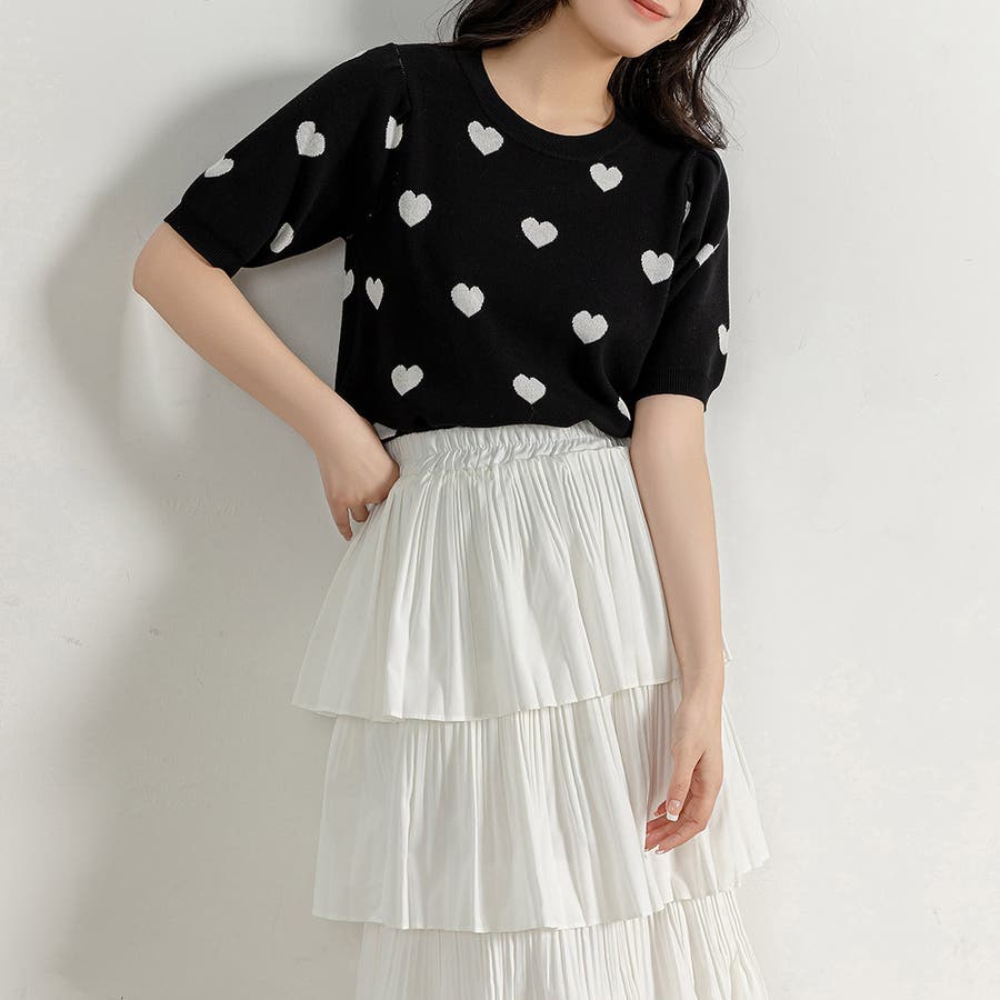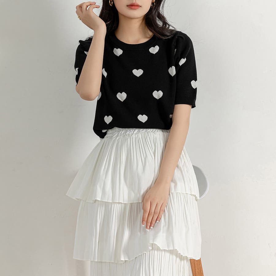 コーデのアクセントになるドット柄orハートドット柄トップス。