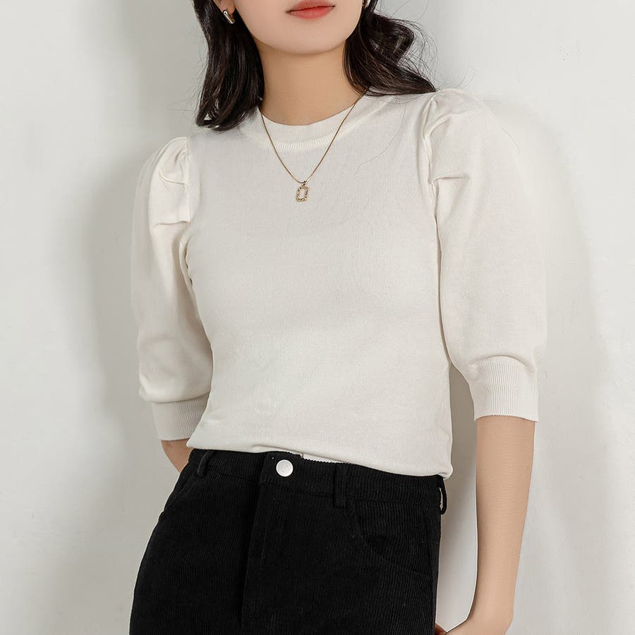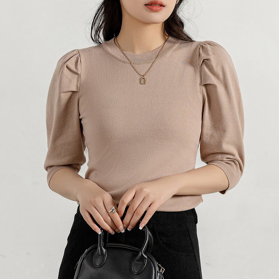 パワショルですが、袖口がリブなのでスッキリとした印象に。