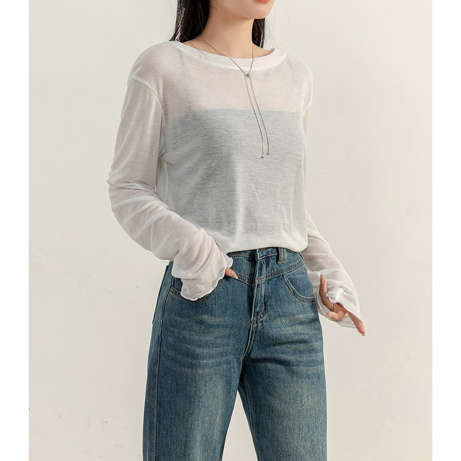 誰でも簡単にトレンド感のあるコーデができるシアートップス。