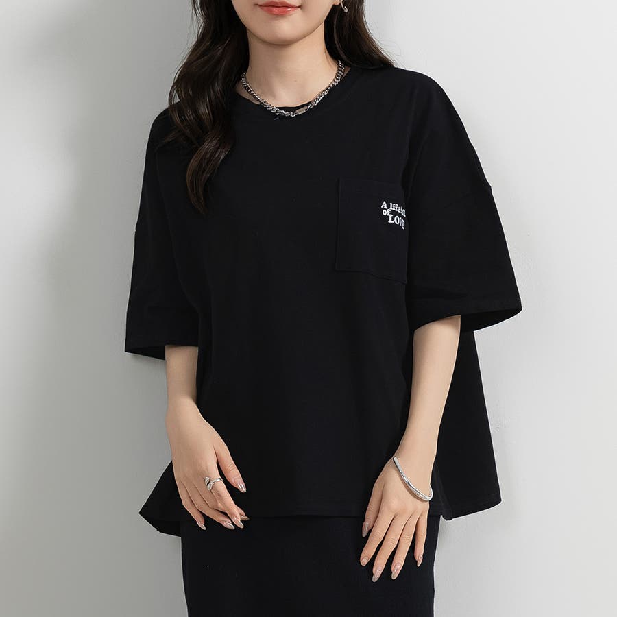 「二の腕を見せない」ポケット刺しゅうTシャツ