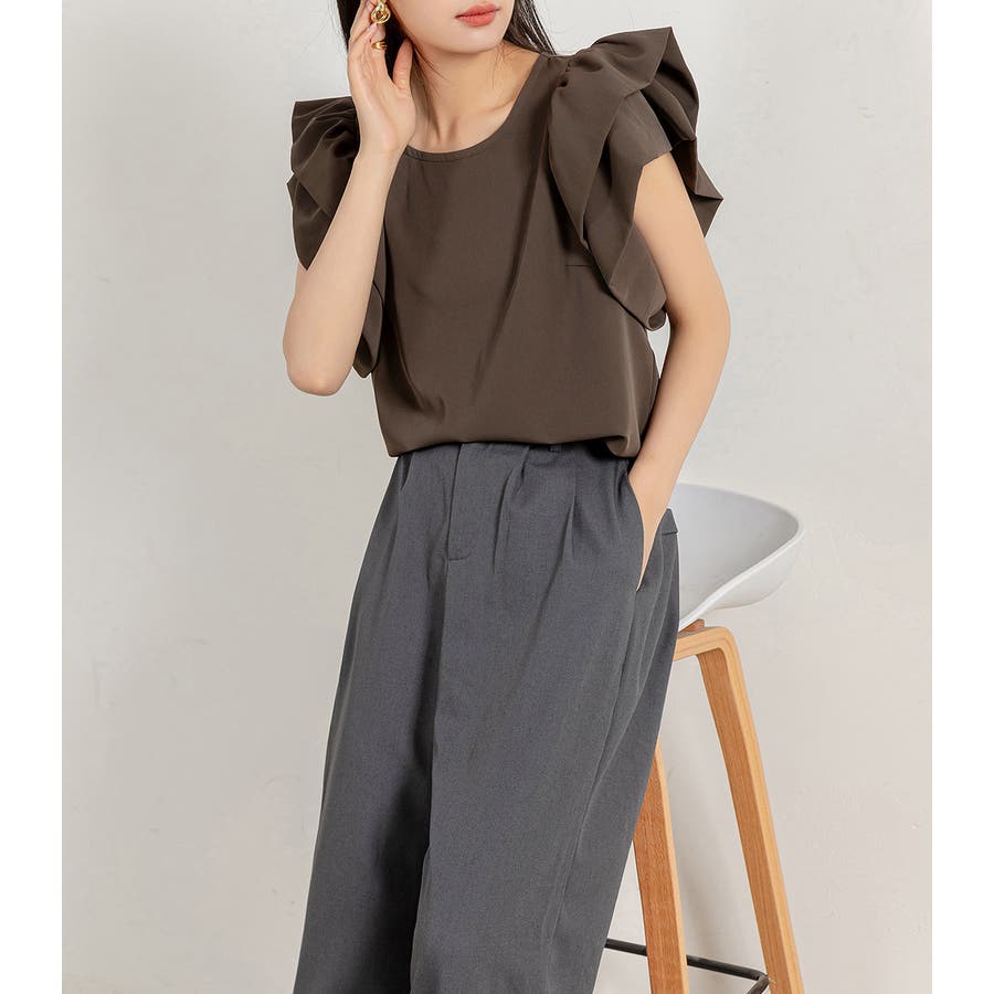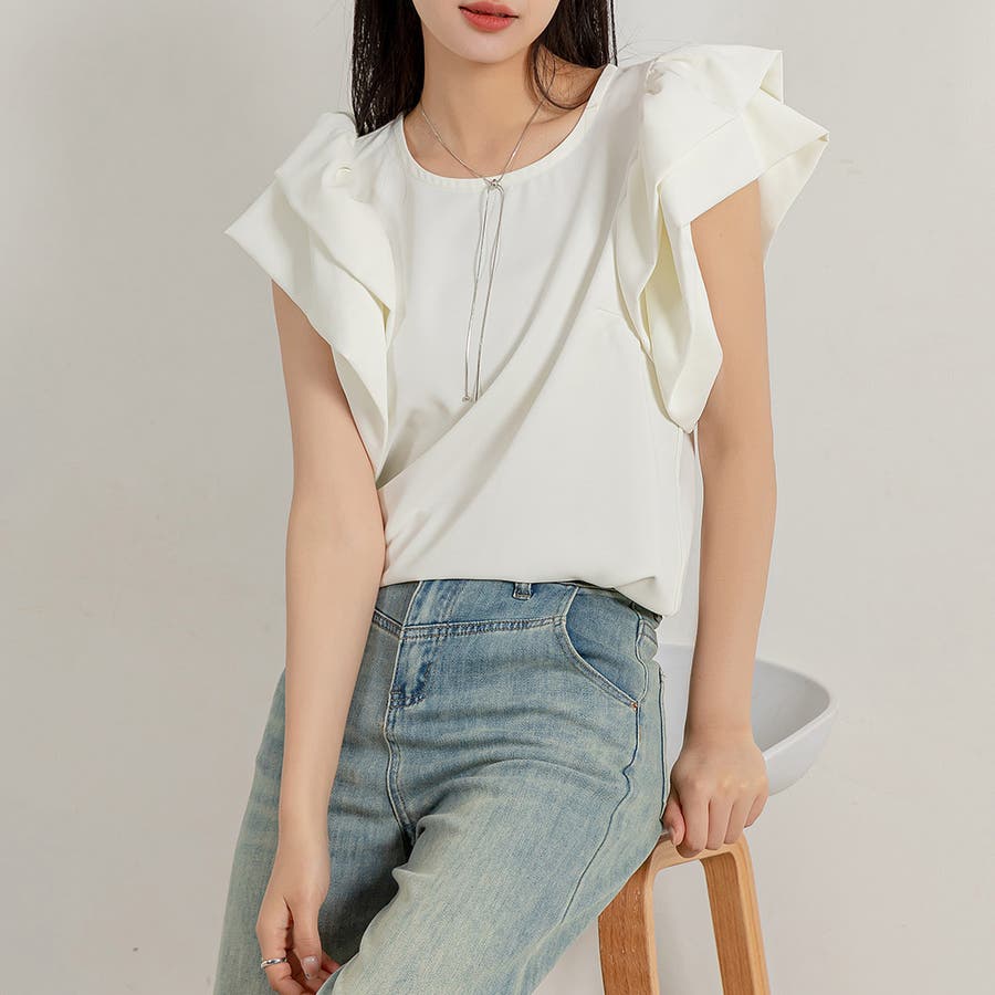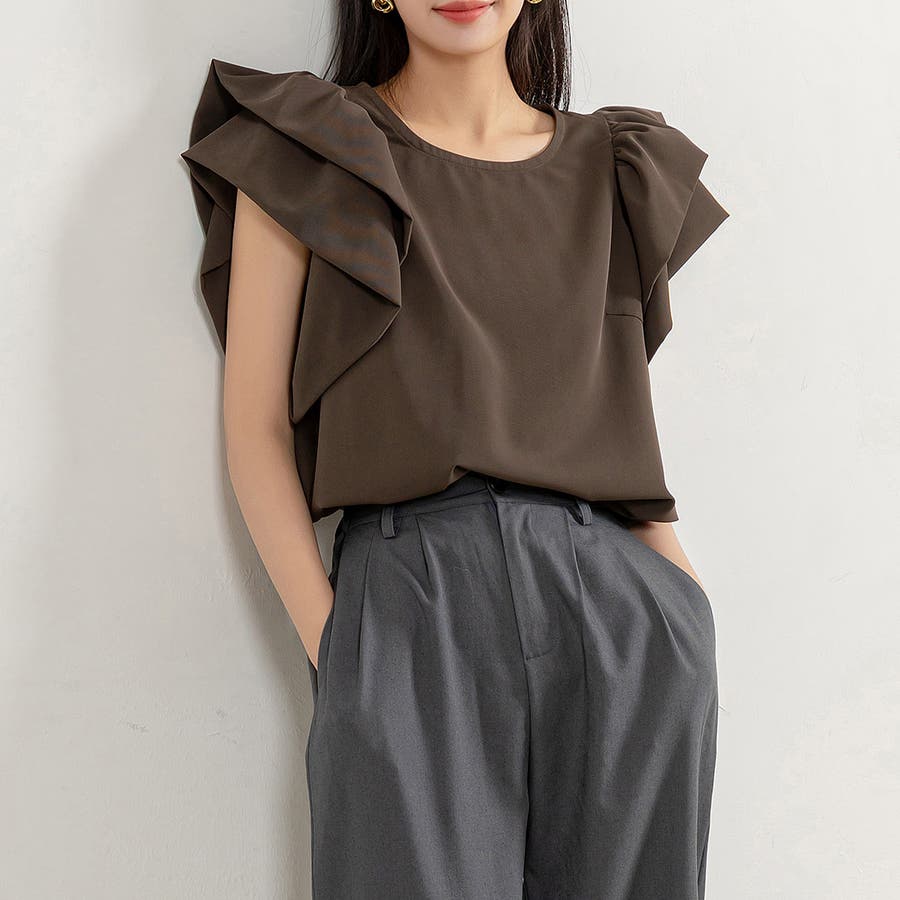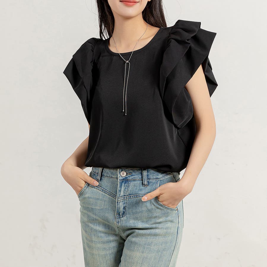 二段になった肩フリルのボリューム感がお洒落なブラウス。