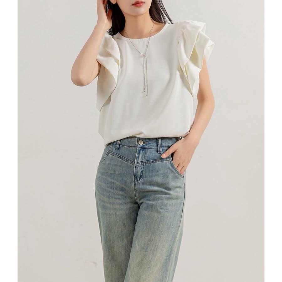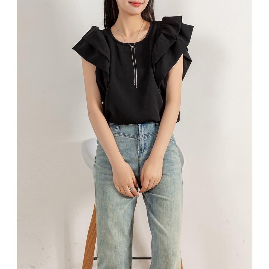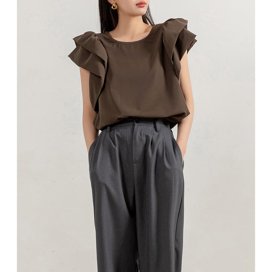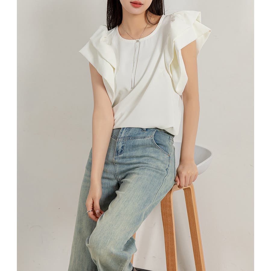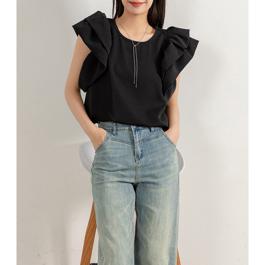 二段になった肩フリルのボリューム感がお洒落なブラウス。
