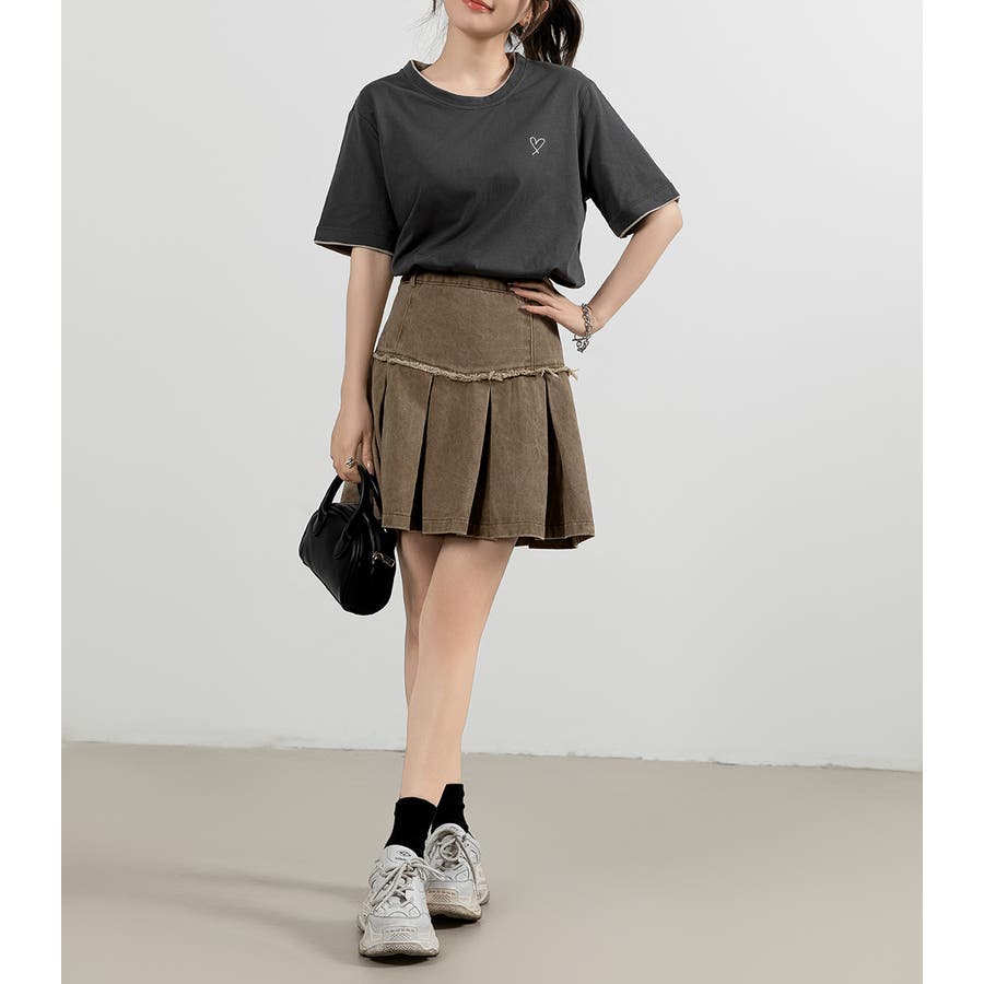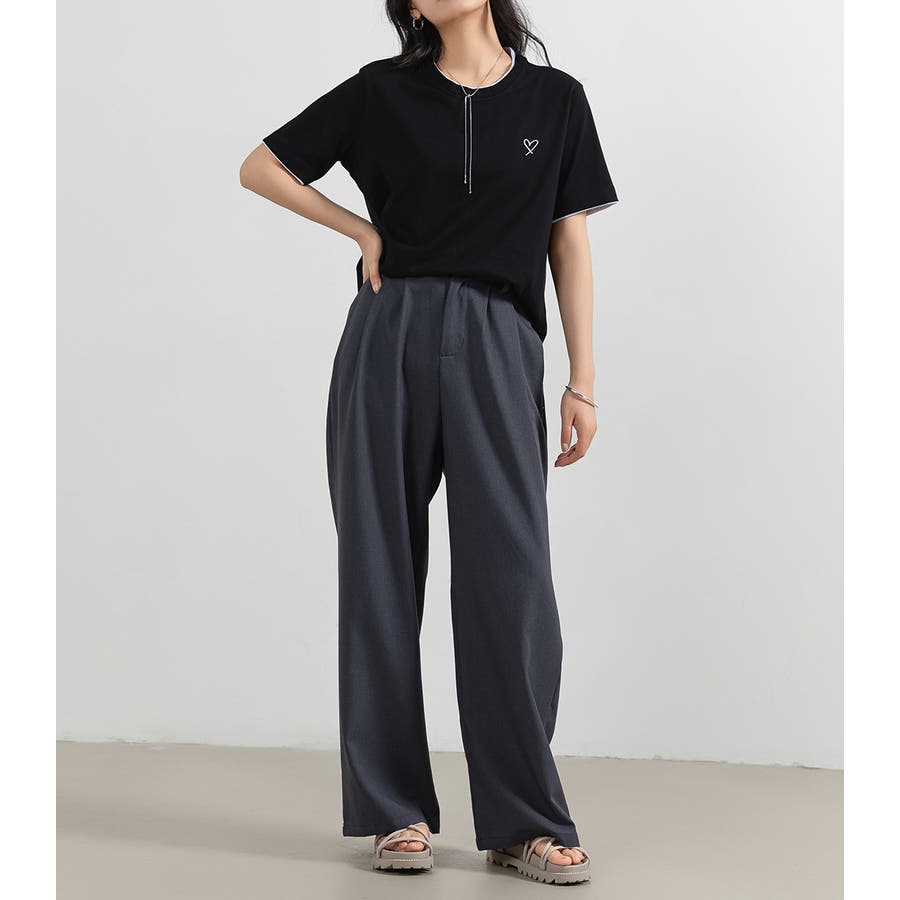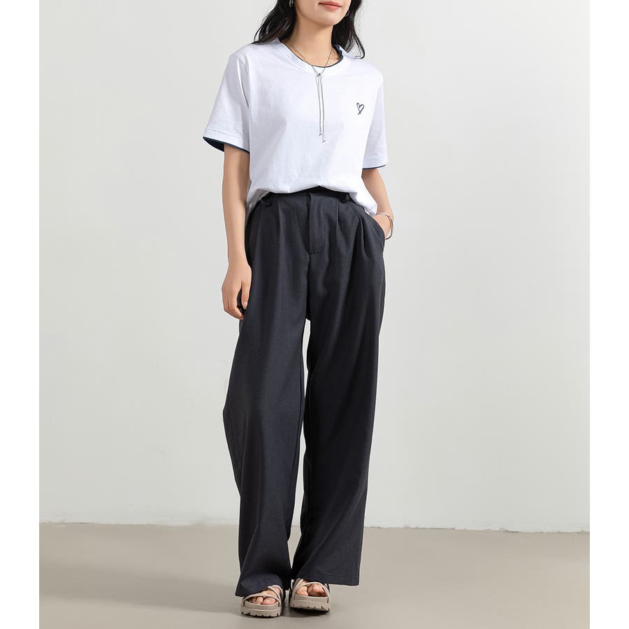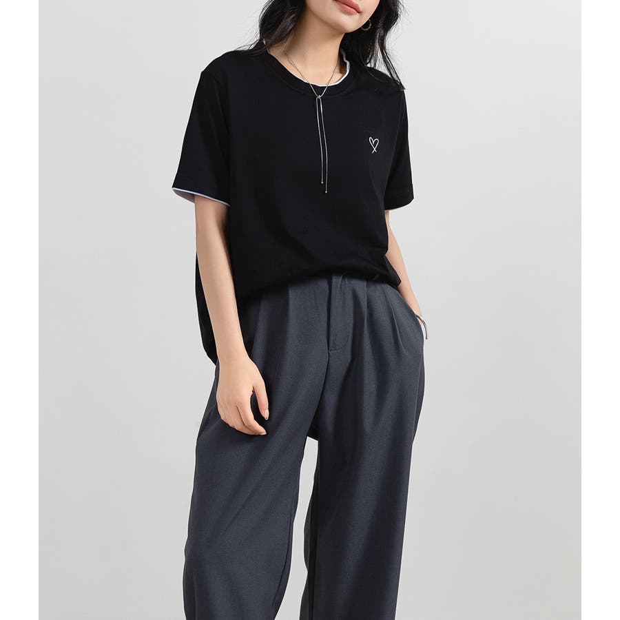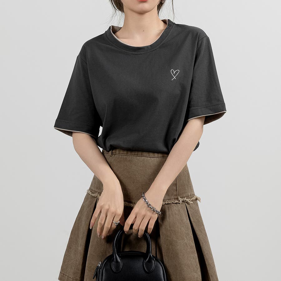 「1枚でレイヤード風」ハート刺しゅうTシャツ