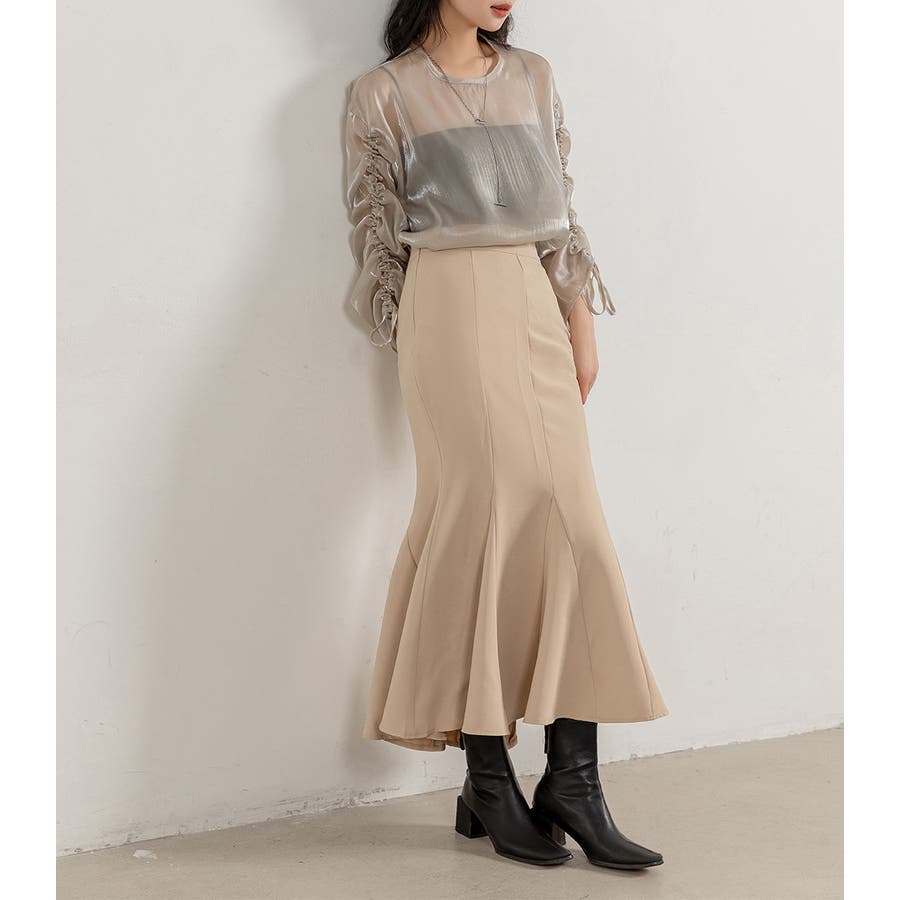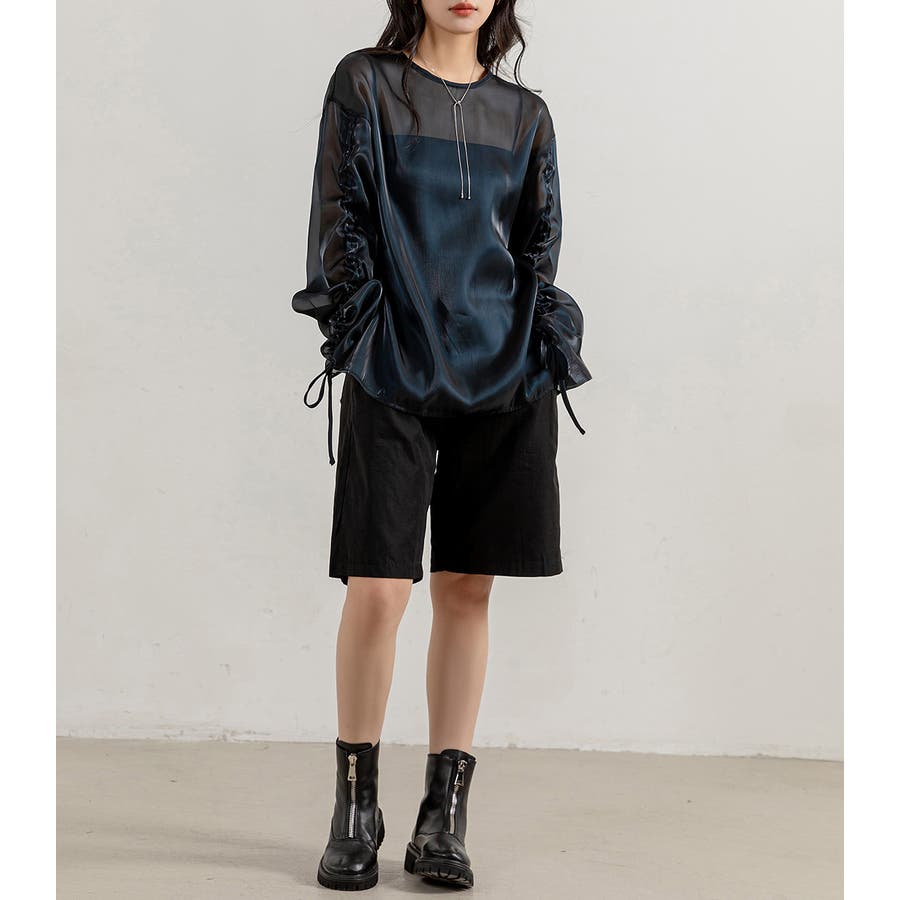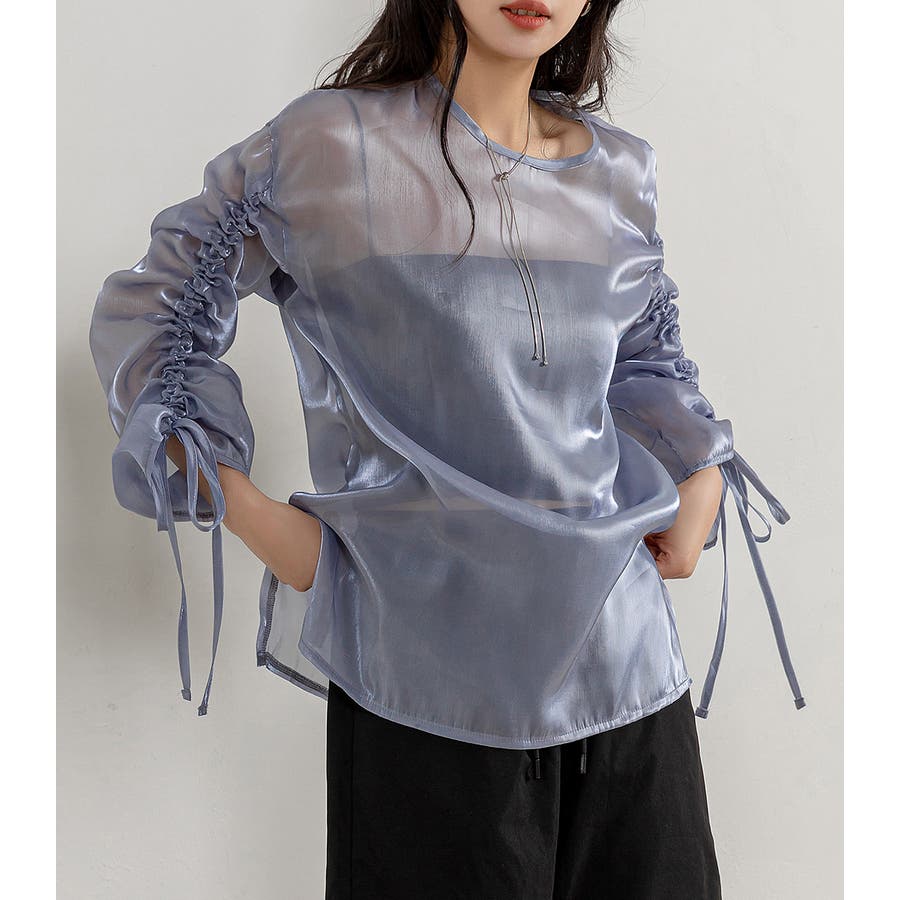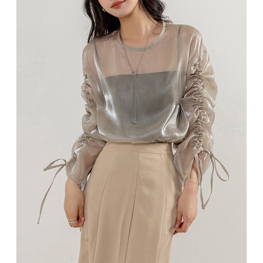 軽やかな女性らしさを演出してくれるのが魅力的な艶感シアートップス。