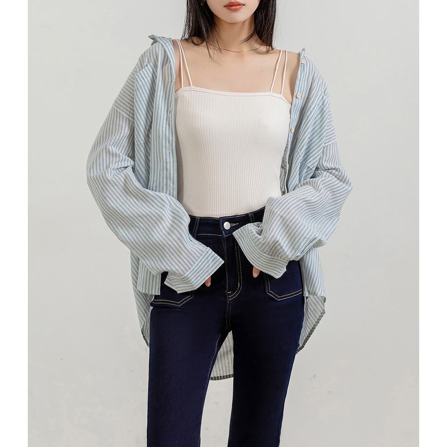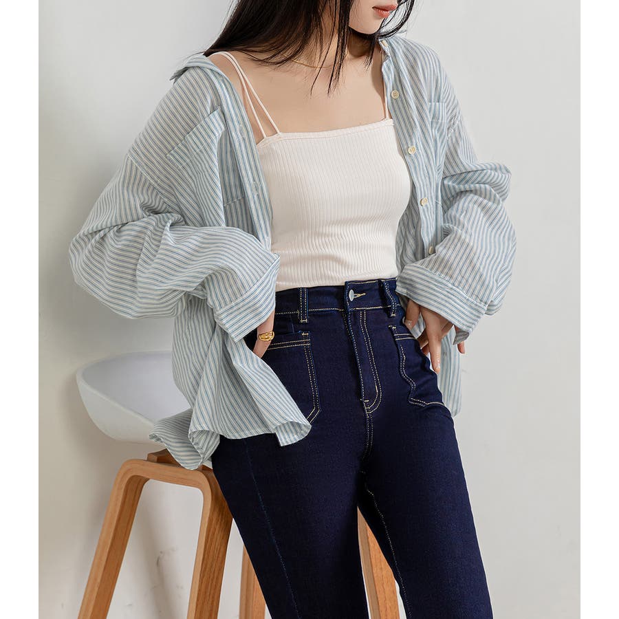 トレンドのシアートップスや、シャツやアウターと合わせて