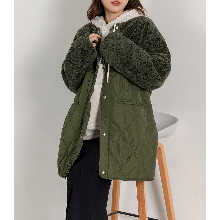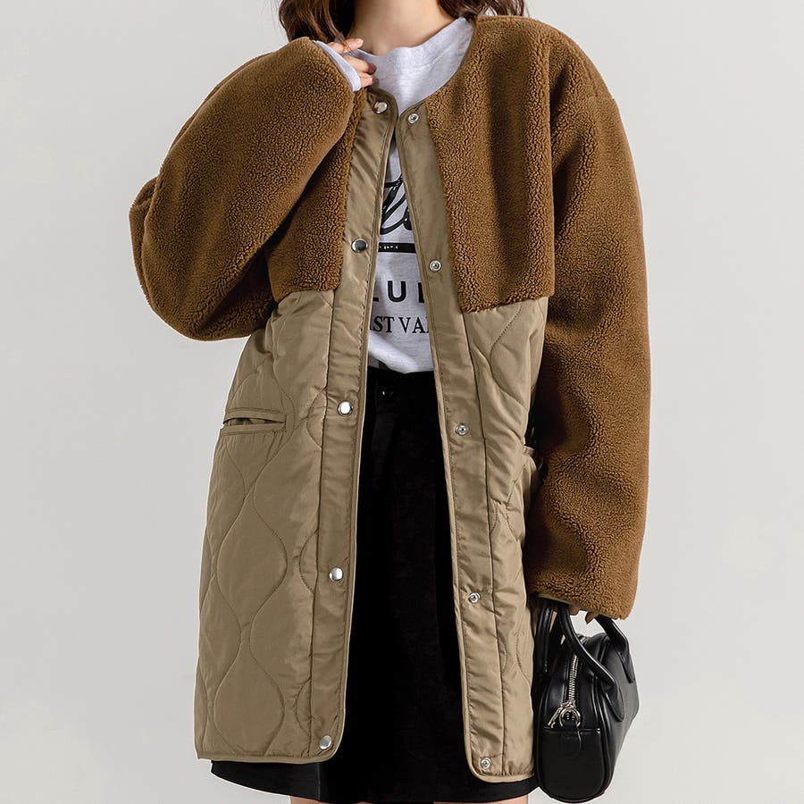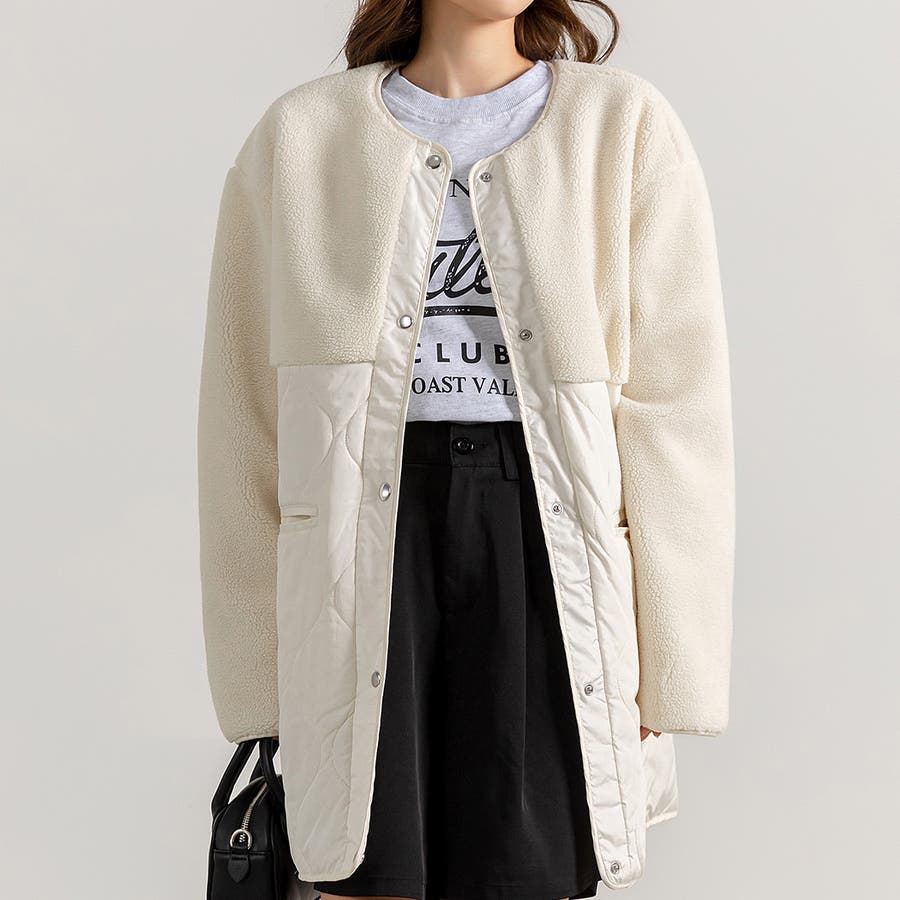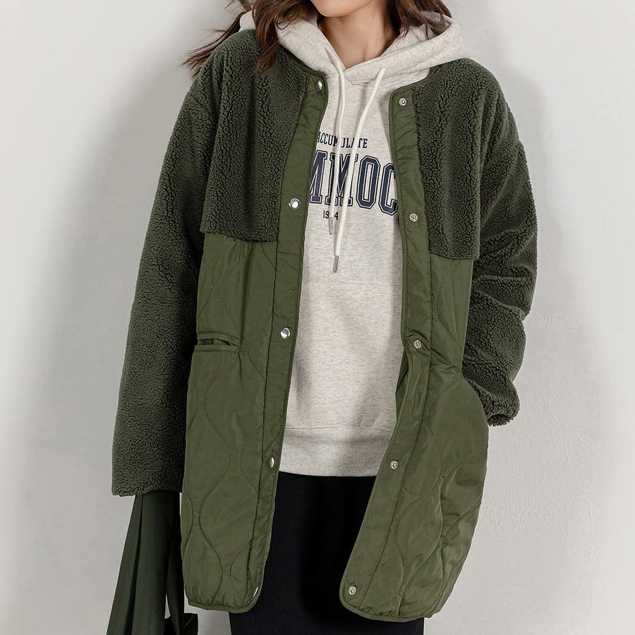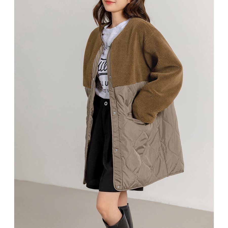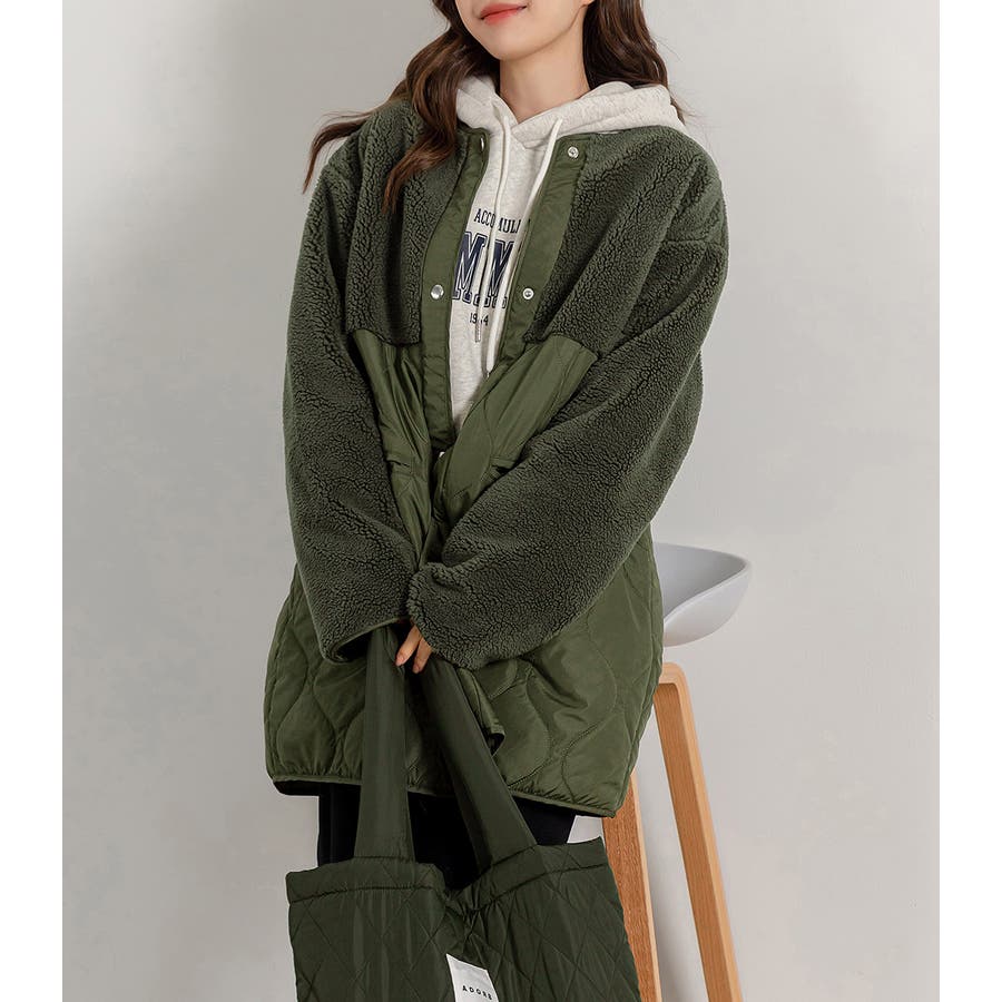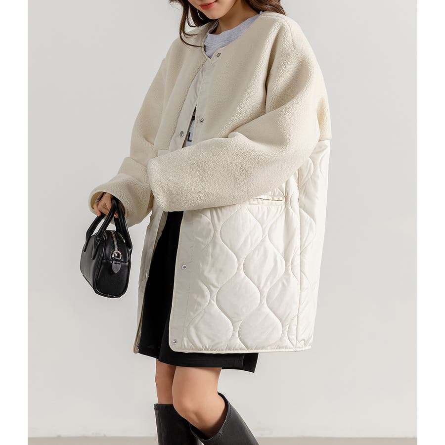 ボアとキルティングの切り替えデザインが、今っぽいカジュアルさを
