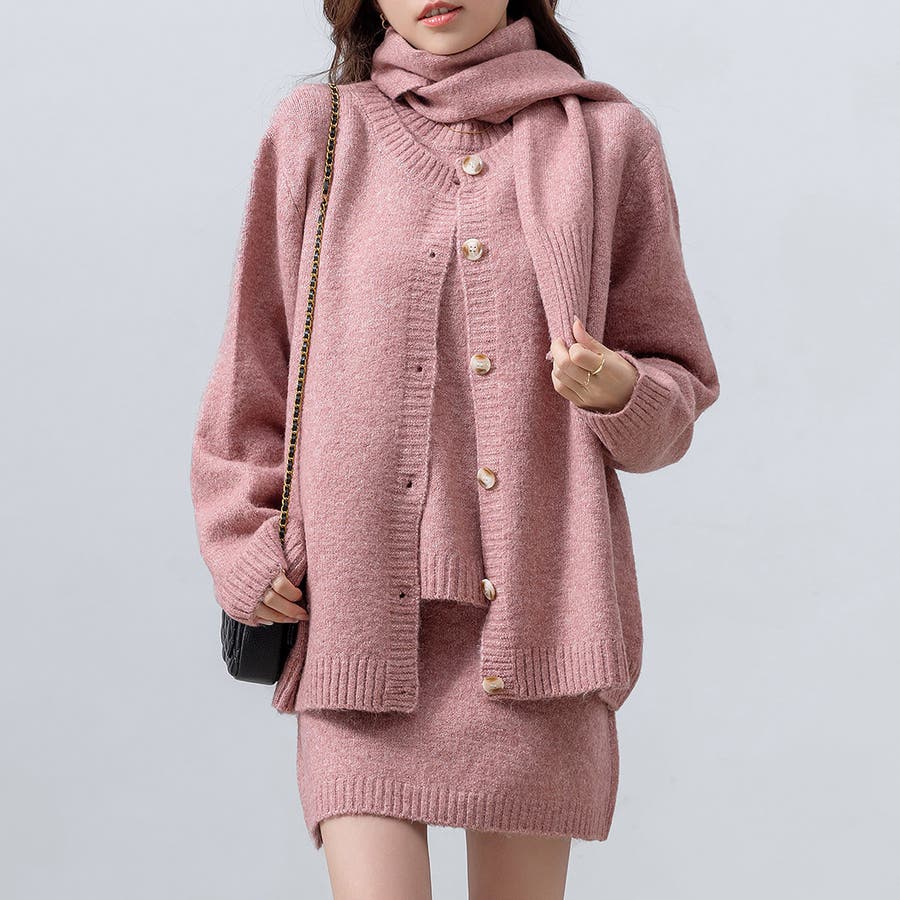 カーディガン・トップス・スカート・マフラーの4点セット