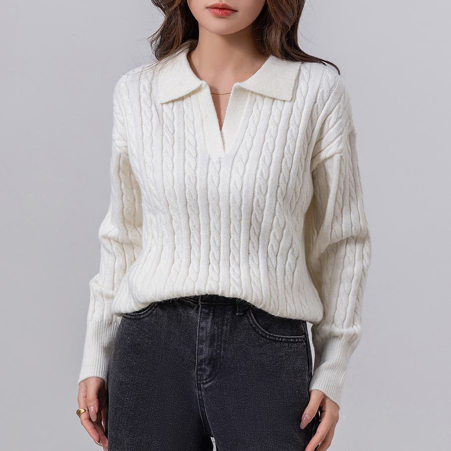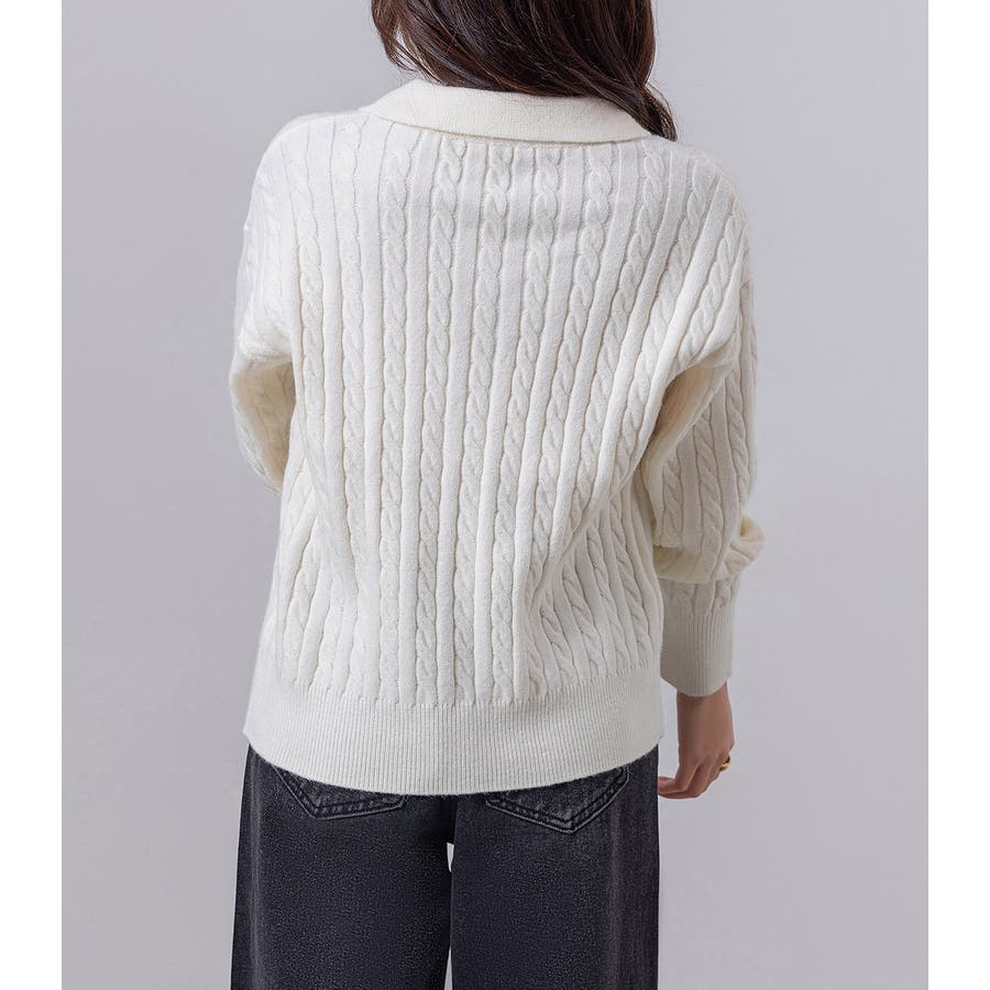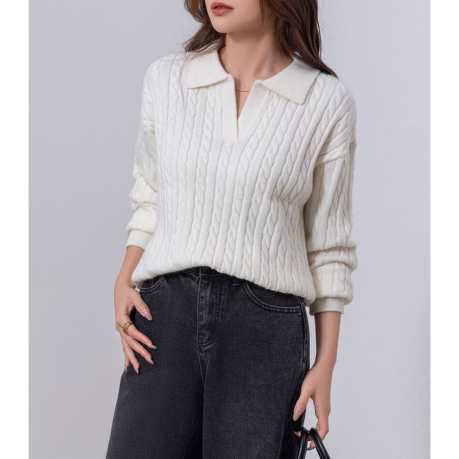 ほどよいきちんと感があり、大人カジュアルに着こなせる襟付きニット。