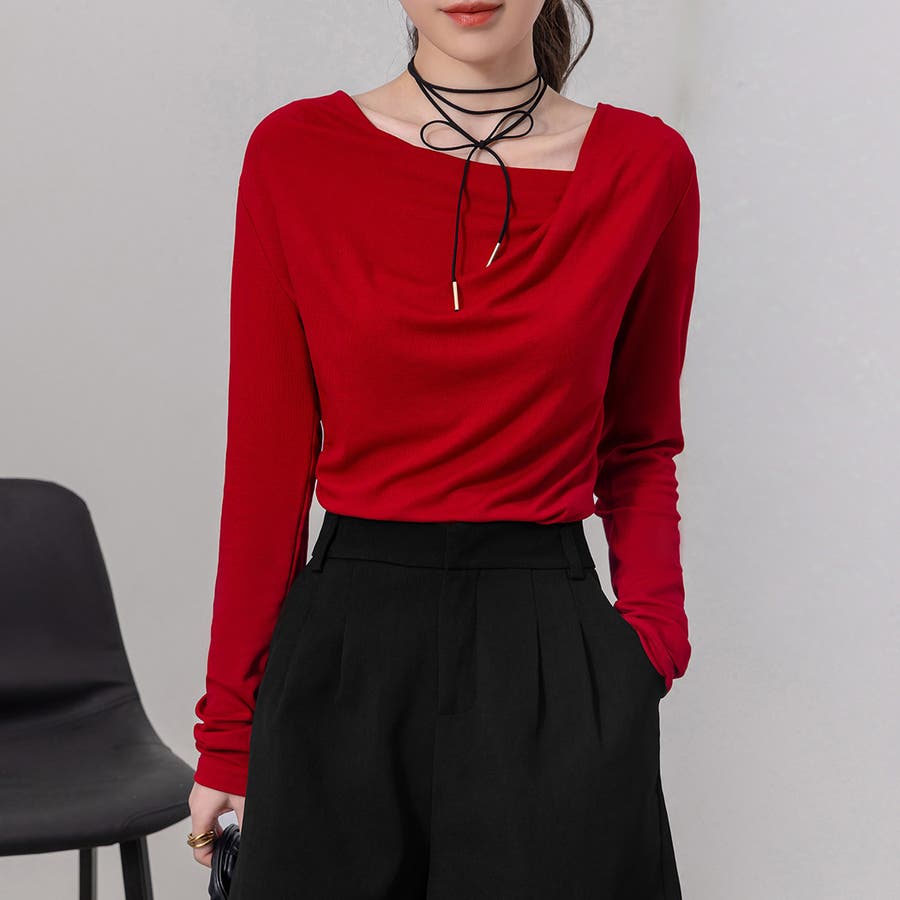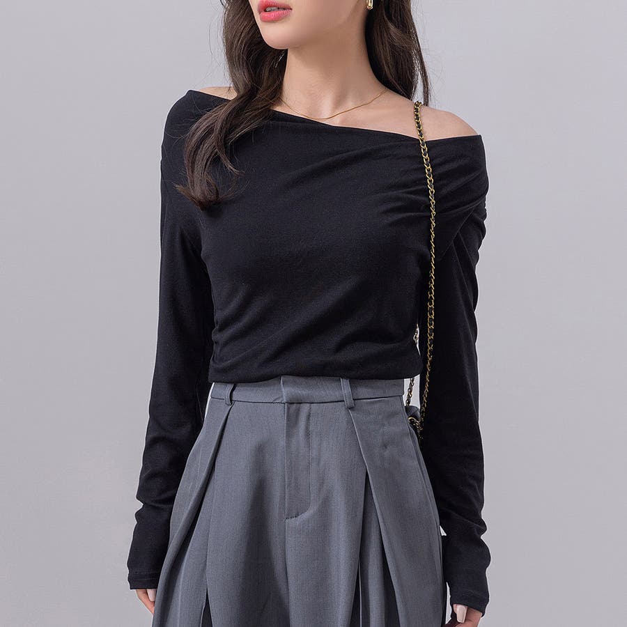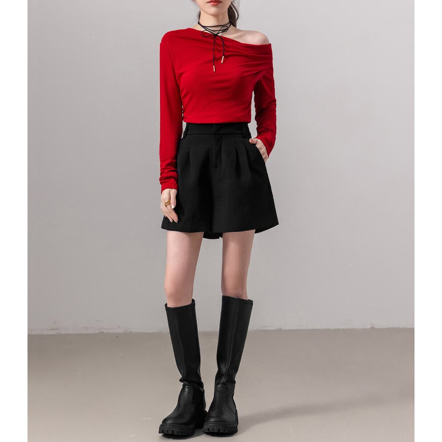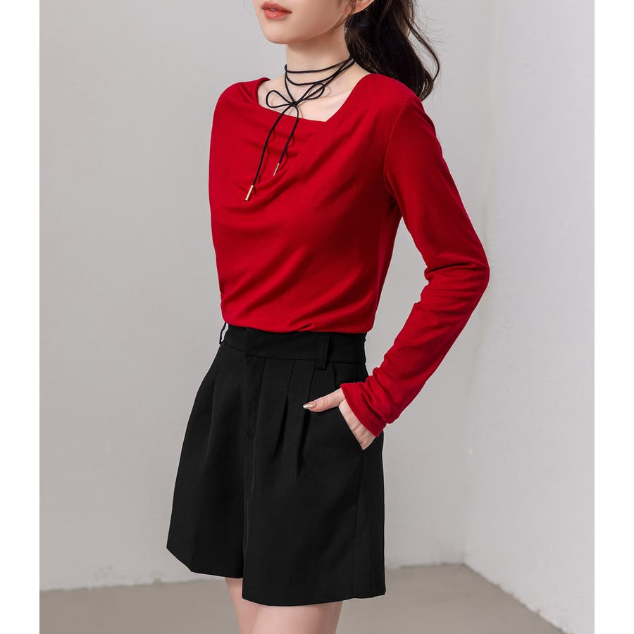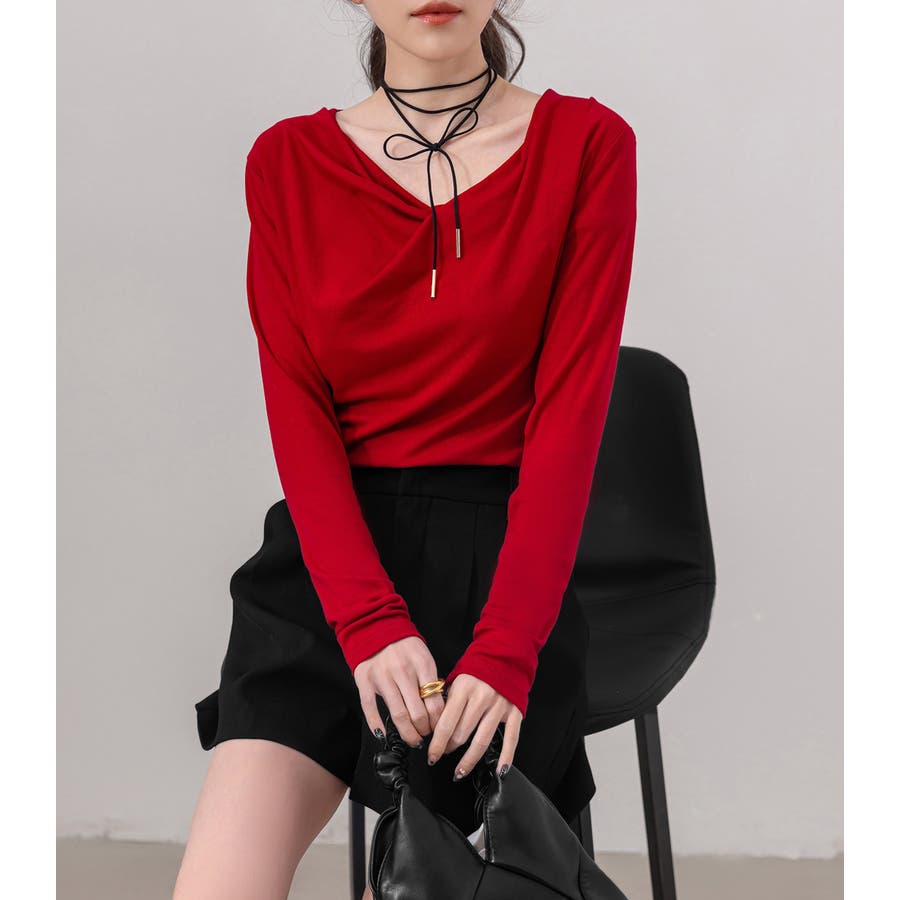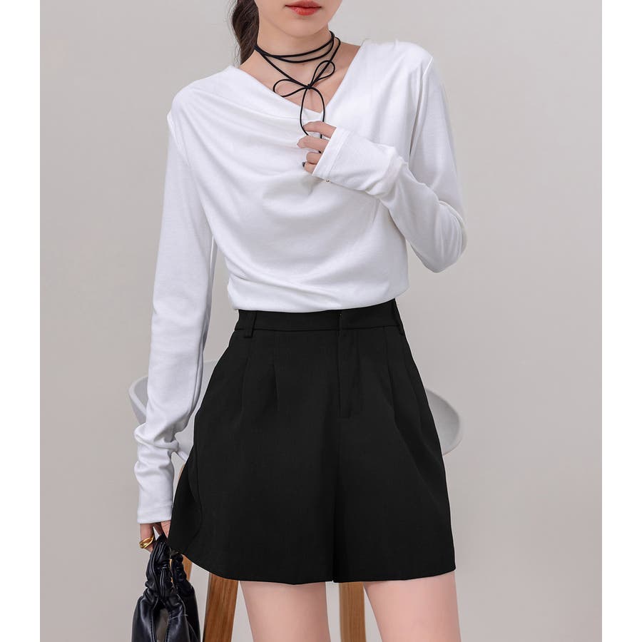 Vネックやワンショルダー、オフショルダーで着てもOK!