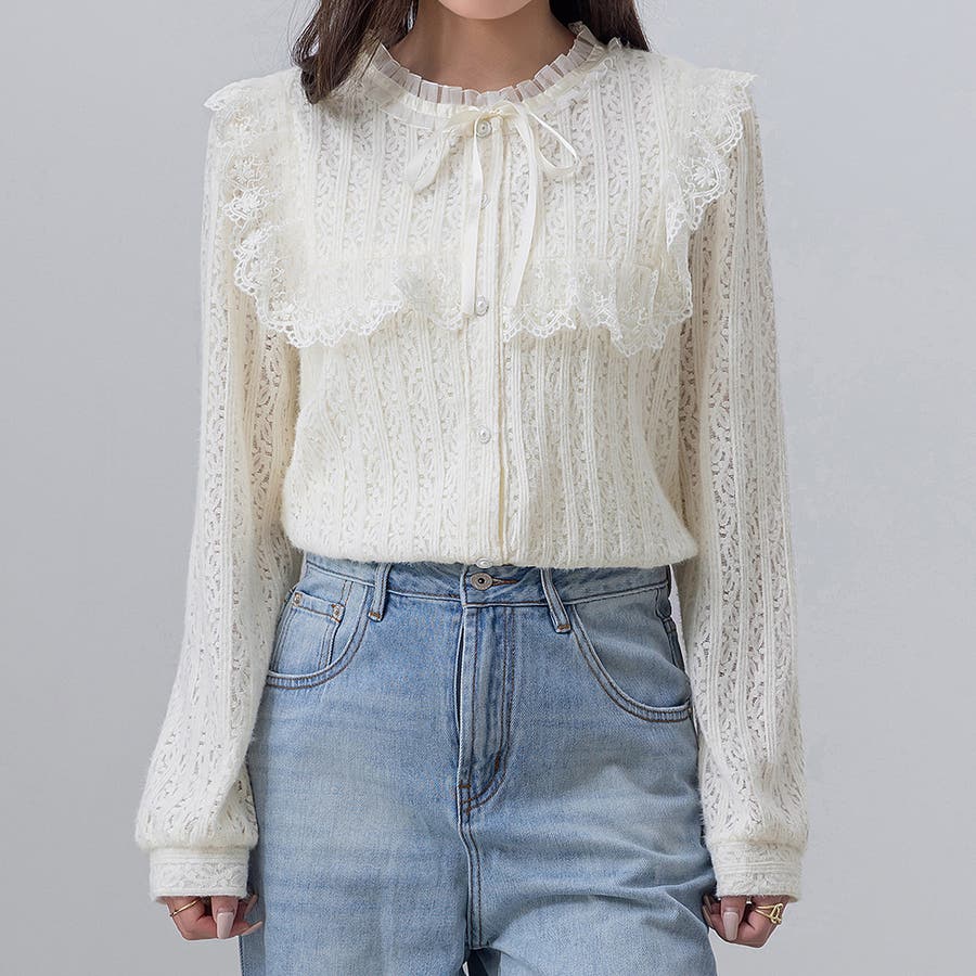 これ一枚で着こなしに華やかさと上品さを与えてくれる着映え力のあるレースブラウス。