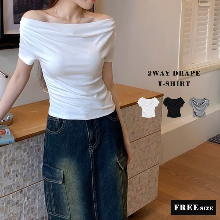 ドレープオフショル半袖Tシャツ