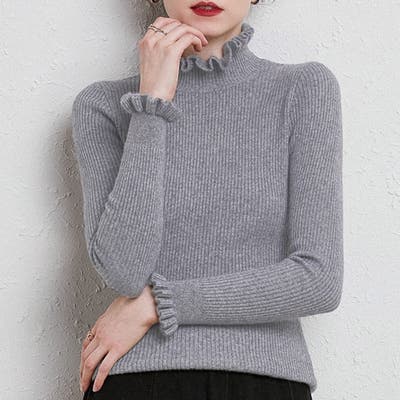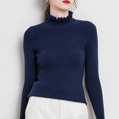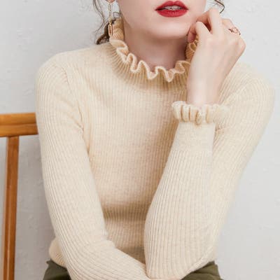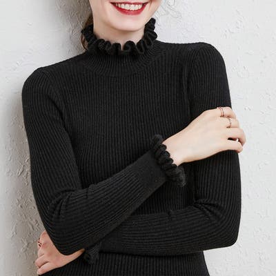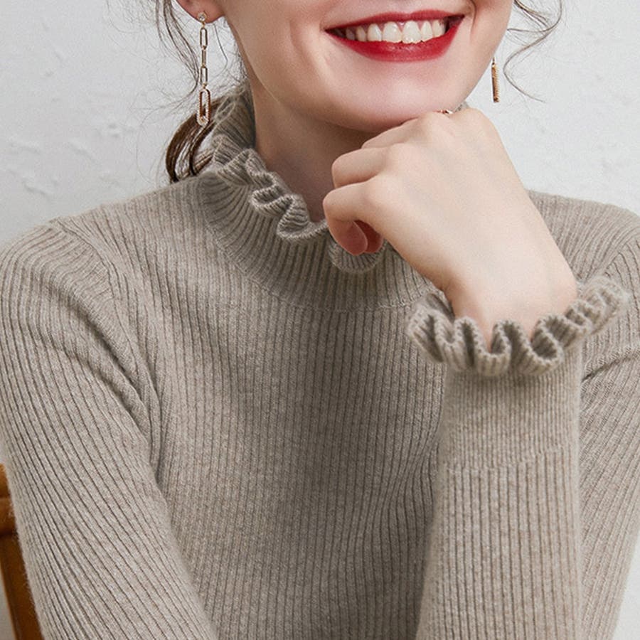 ちょっぴりお洒落したい日におすすめフリルネックリブニット