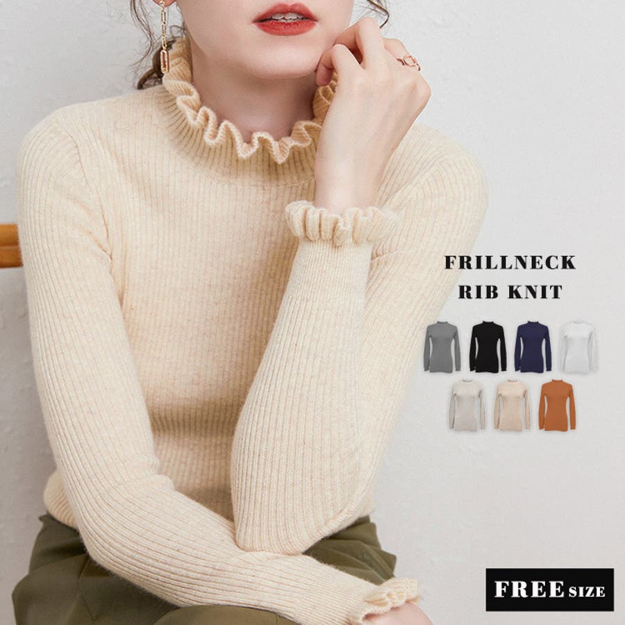 レディース フリルリブニット トップス