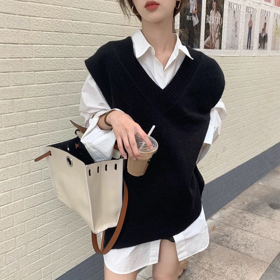 白シャツと合わせてきれいめに、ロンTやタートルネックでカジュアルに。