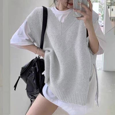 「フレンチスリーブな袖口が◎」ニットベスト レディース ジレ
