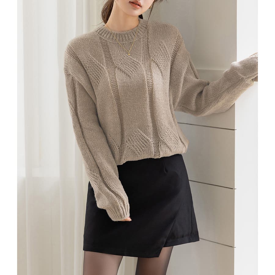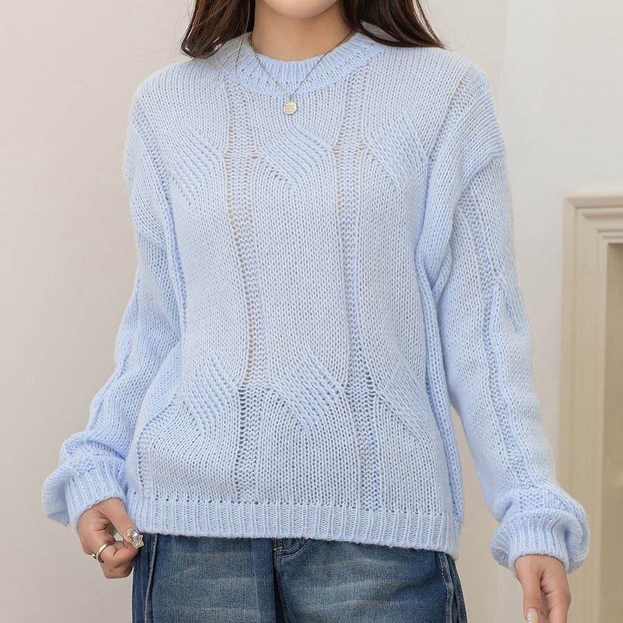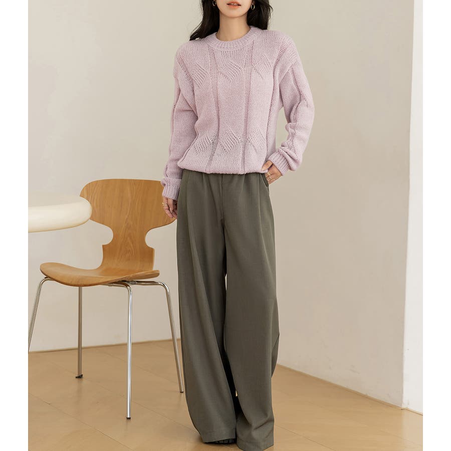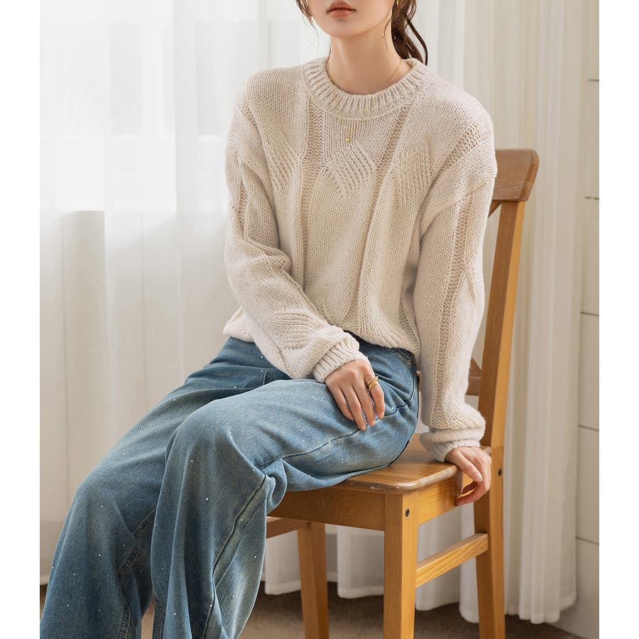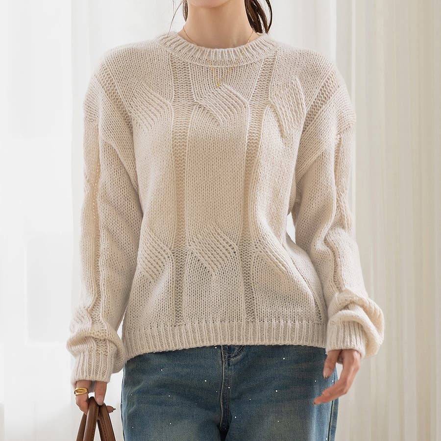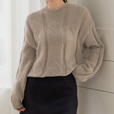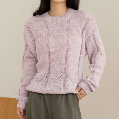レイヤードスタイルを楽しむ透かし編みケーブルニット