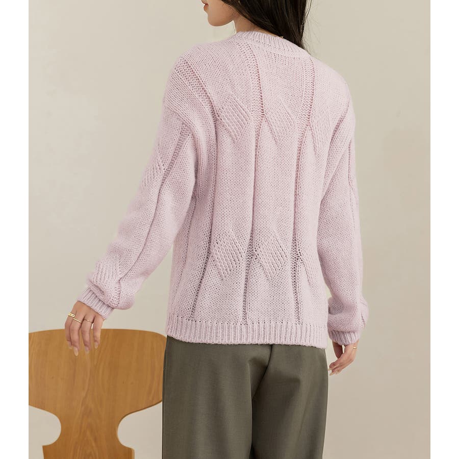程よく透け感のある編み地が大人っぽく、シャツやワンピースと合わせてオシャレに着こなせるデザインです。