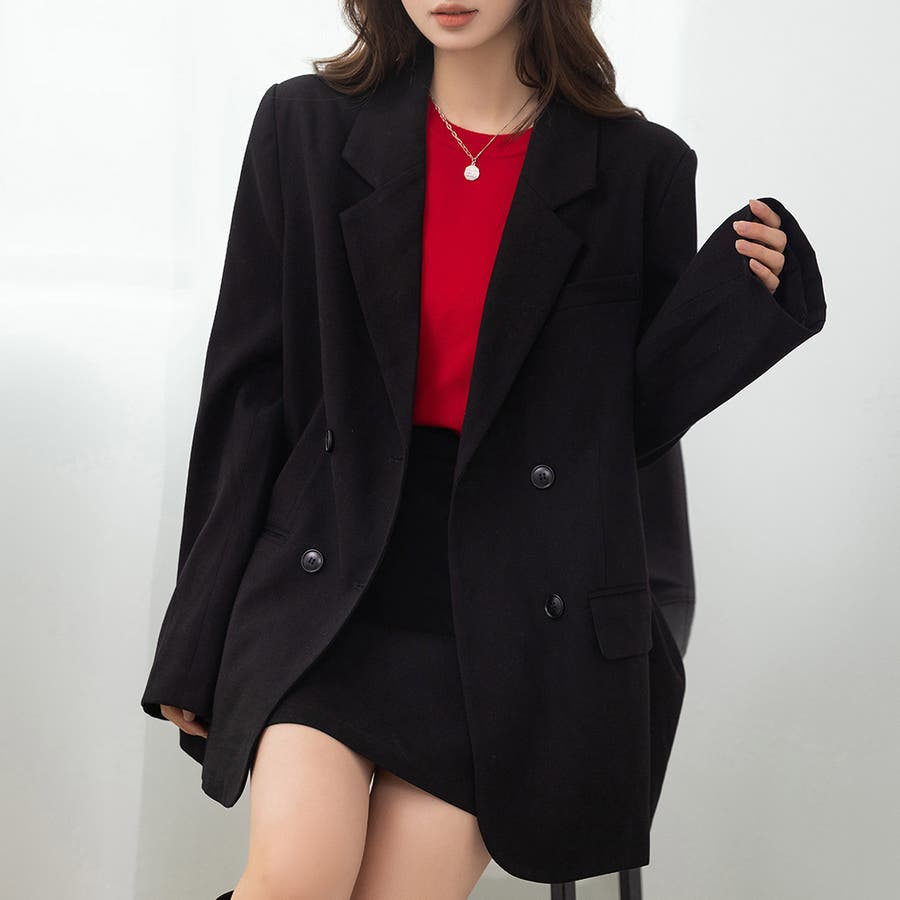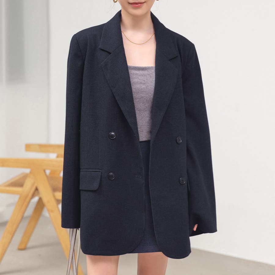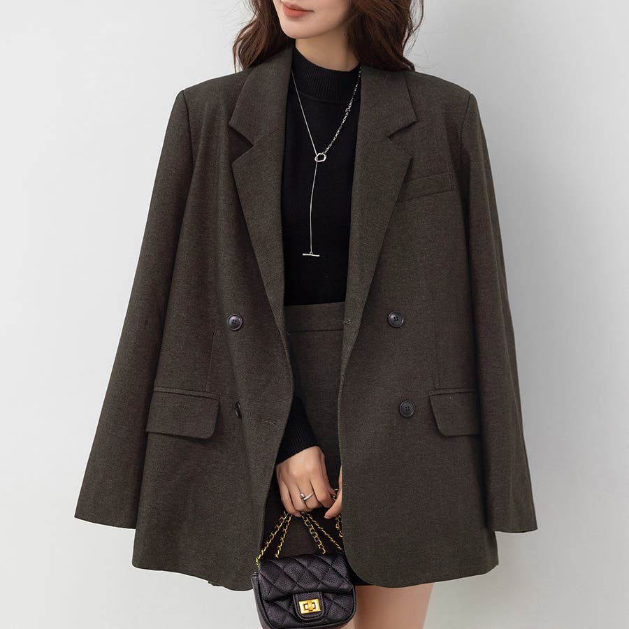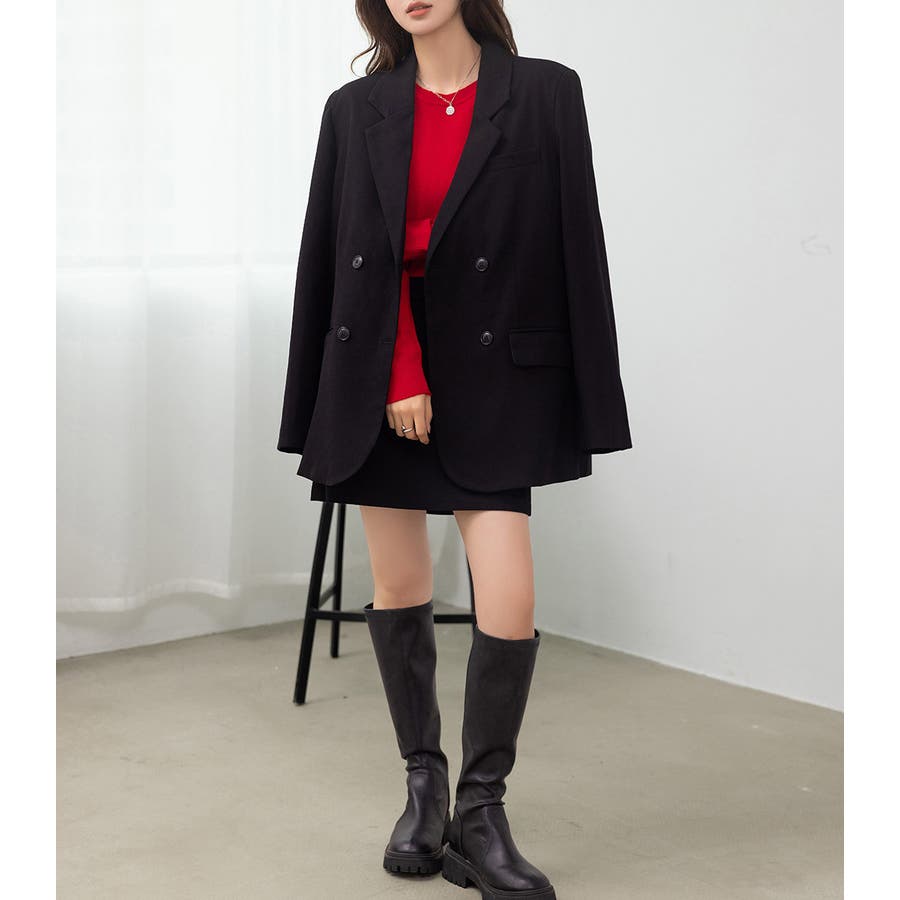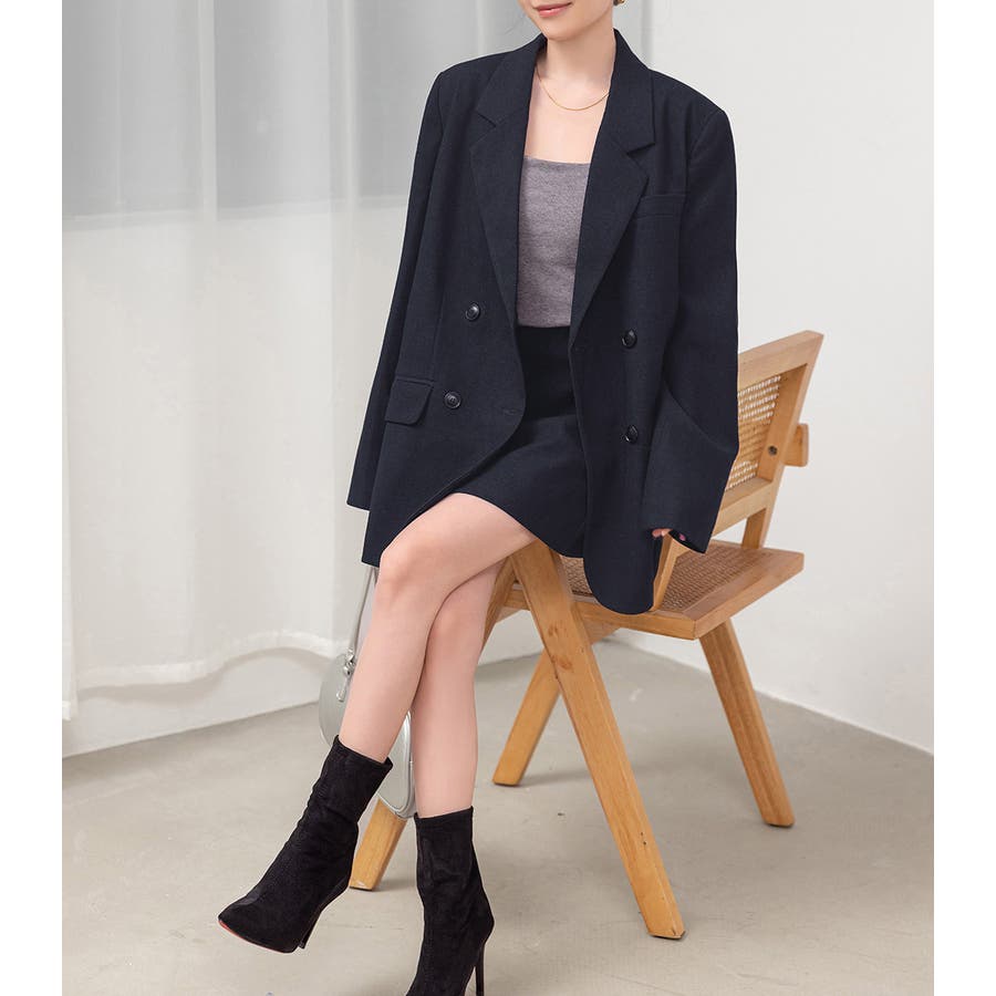 シンプルながらも洗練されたデザインのテーラードジャケット&ミニスカートに、