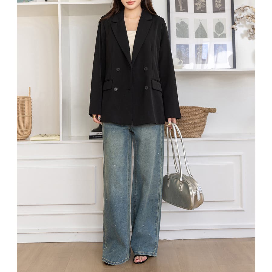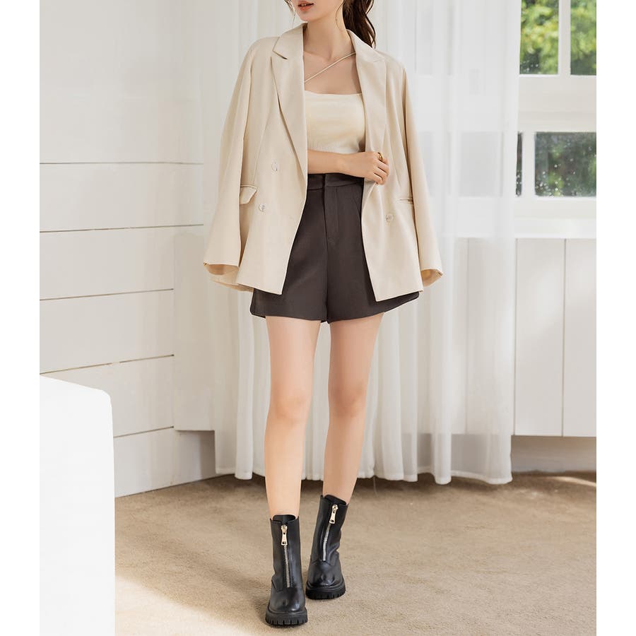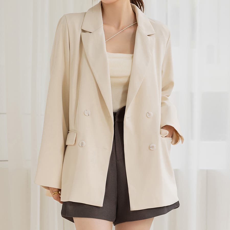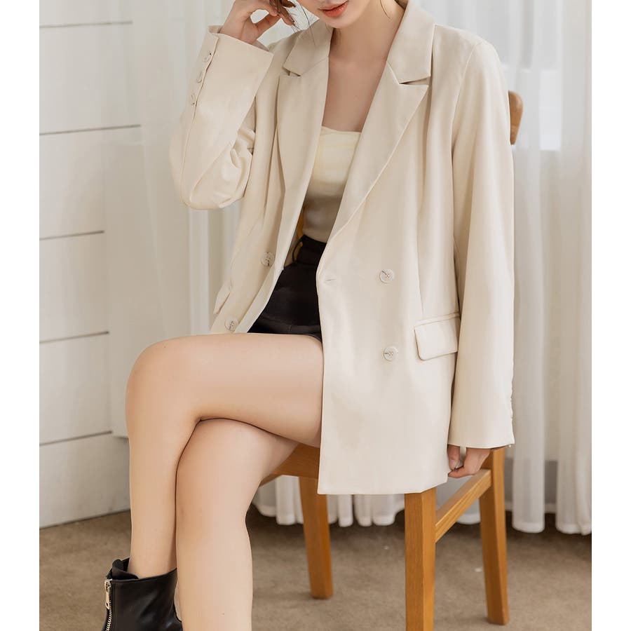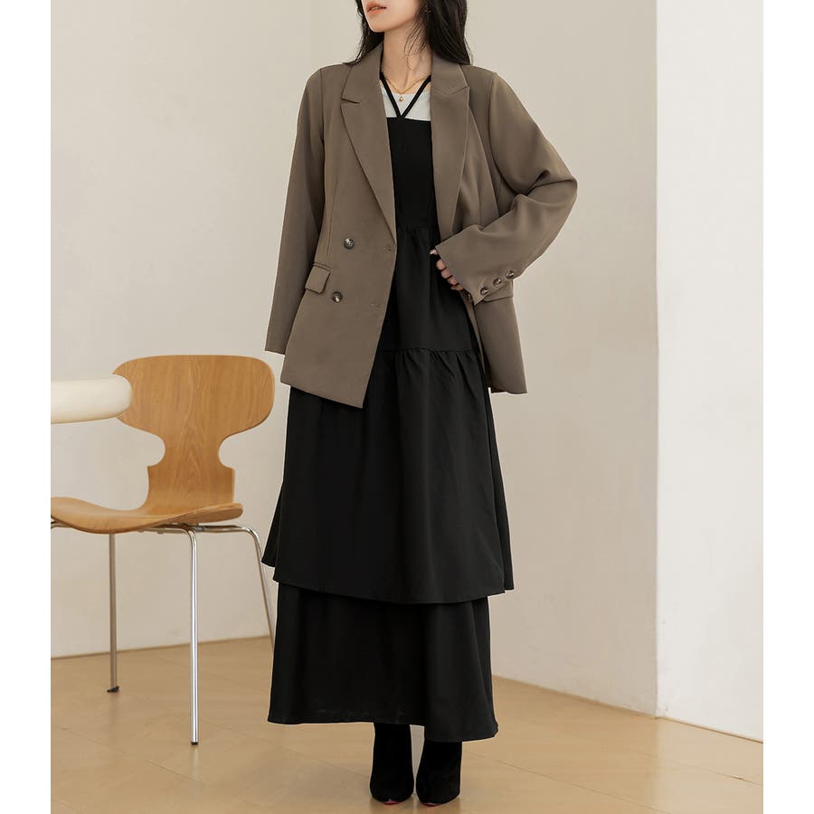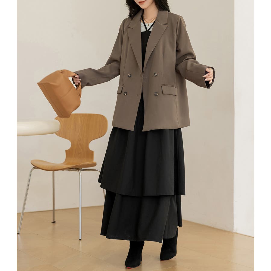 ダブルブレスト仕立てできちんと感を演出してくれるので1枚あると重宝するアイテムです。