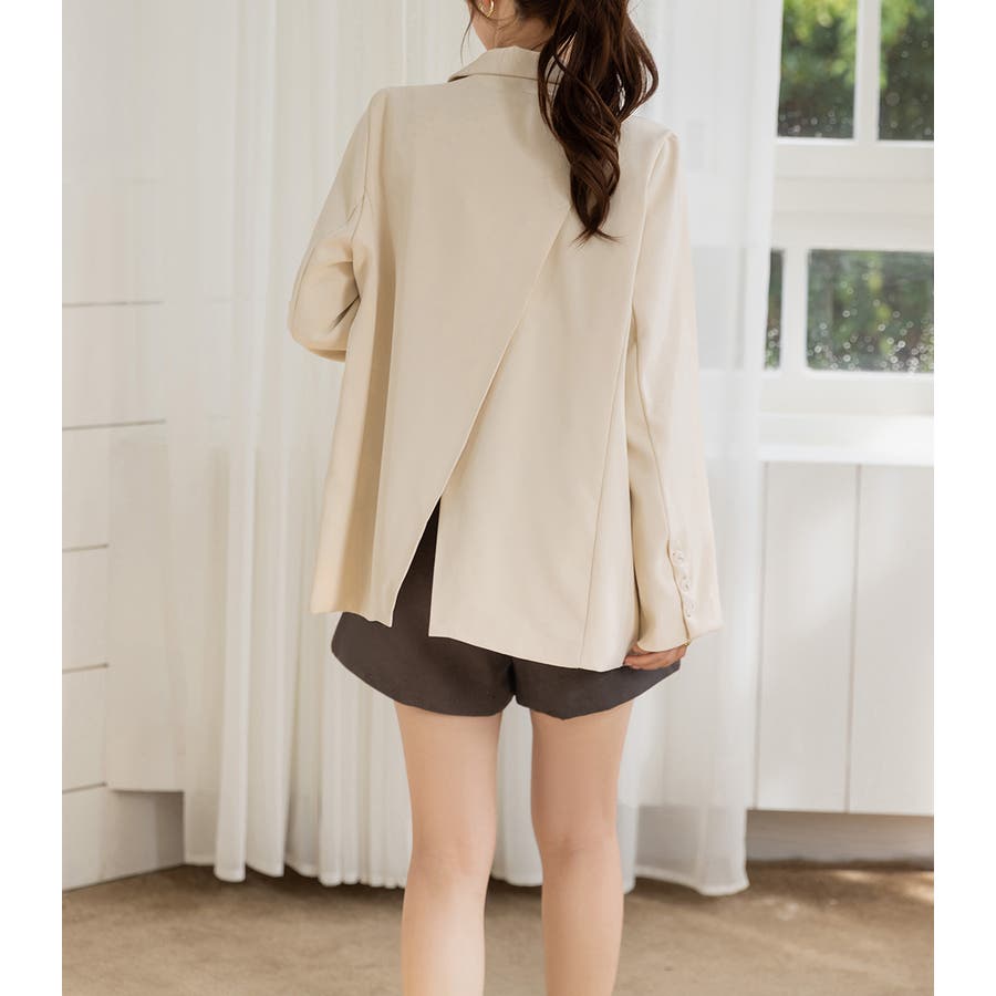 定番のテーラードジャケットに大胆なバックスリットを入れモードな個性をプラス。