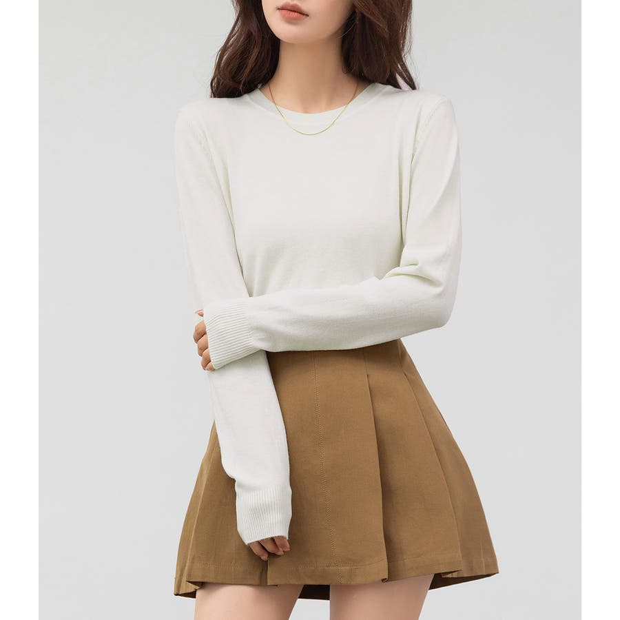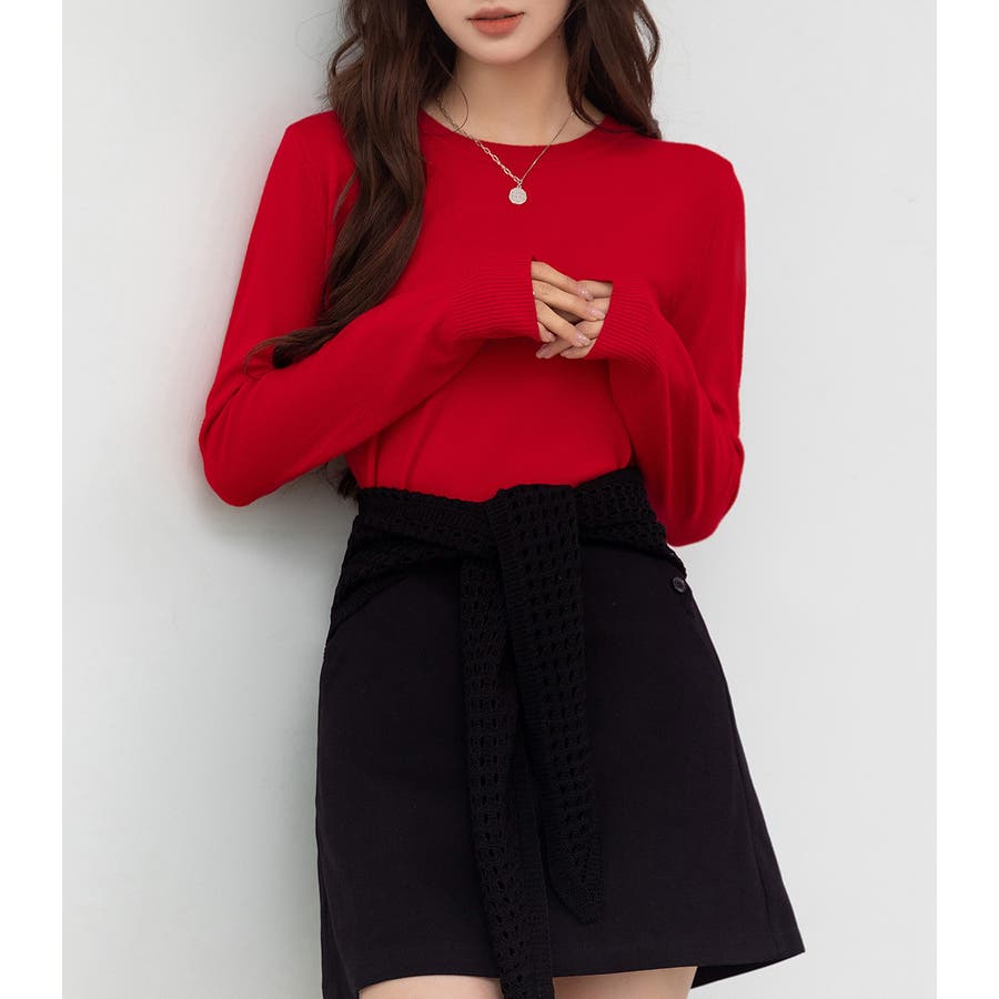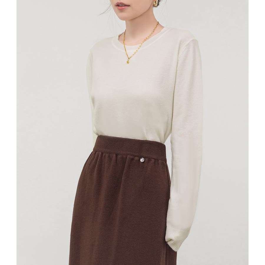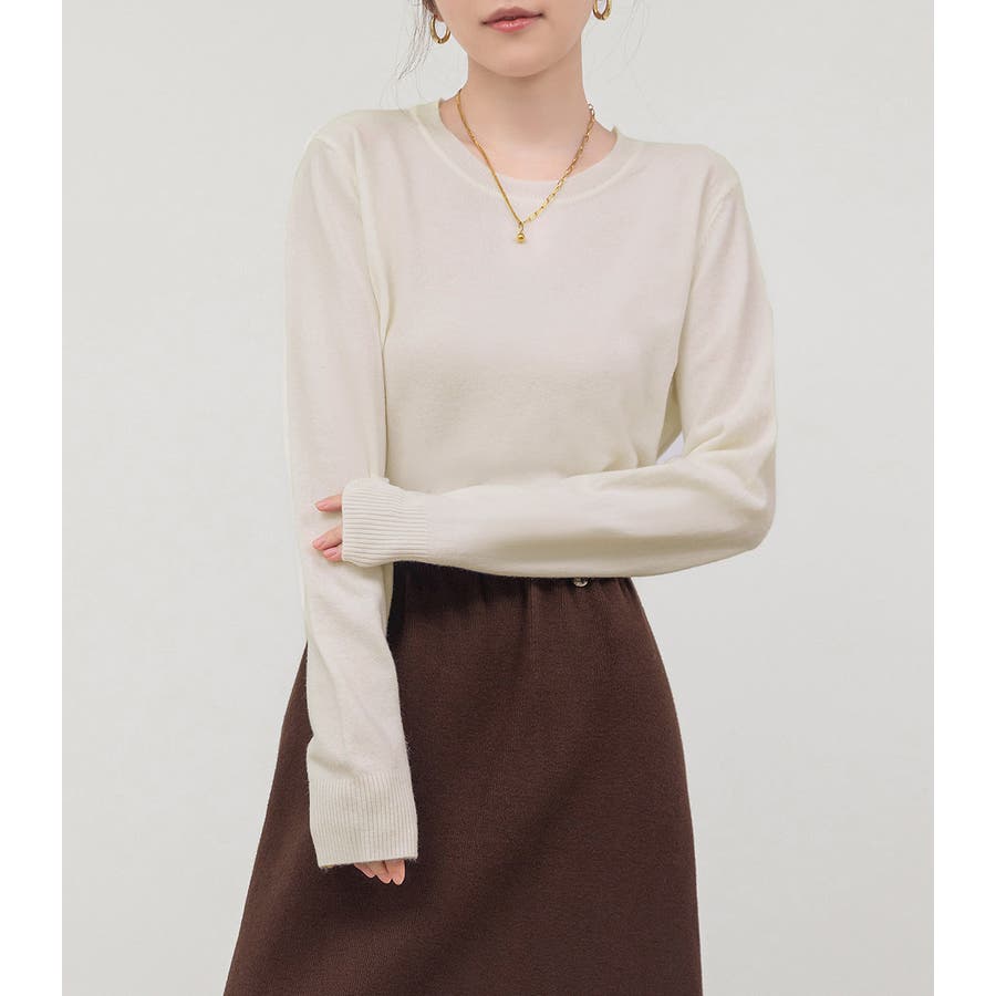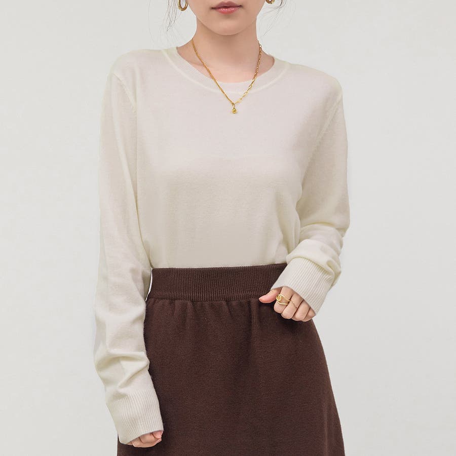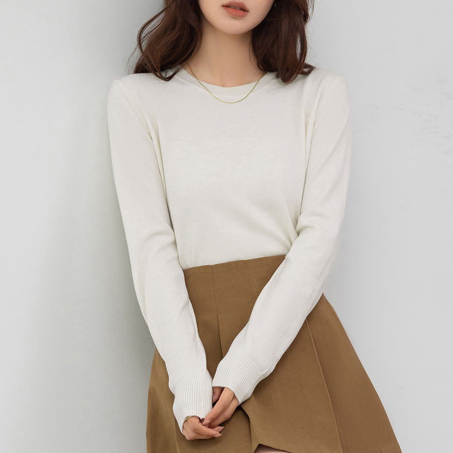 肌触りの良い薄手ニットでインナーとしても一枚着としても活躍。