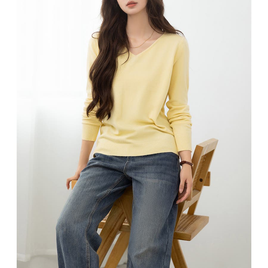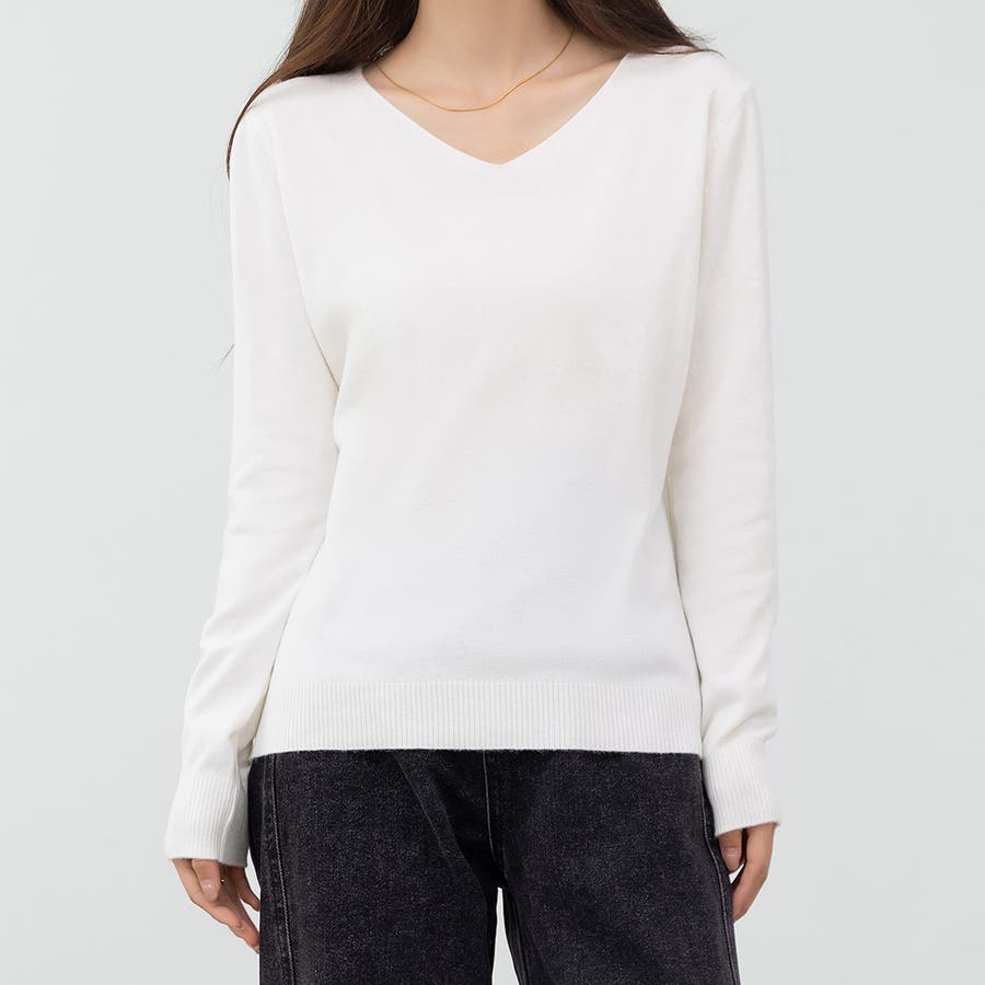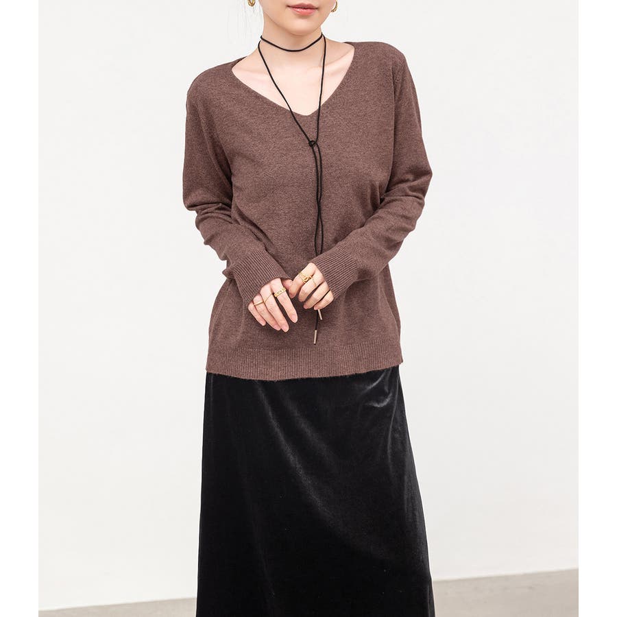 さらっとした肌ざわりの薄手ニットでインナーとしても一枚着としても活躍。
