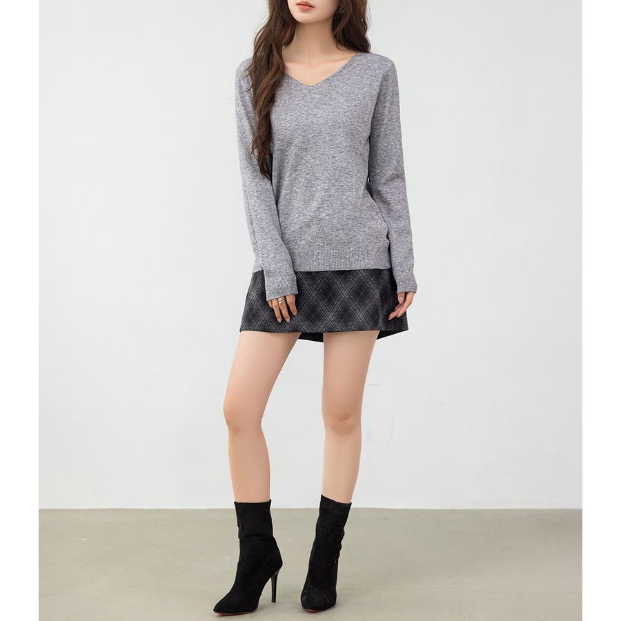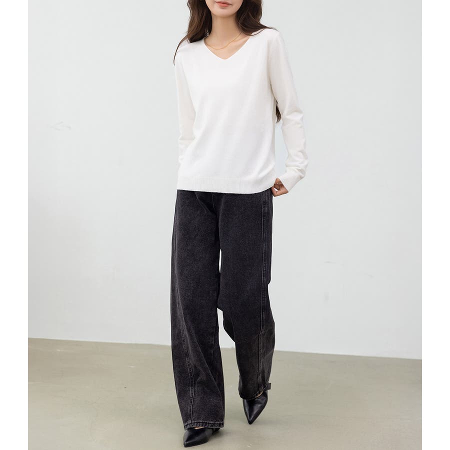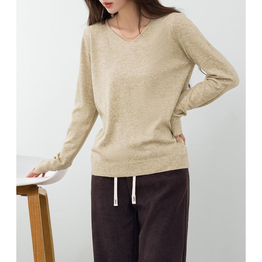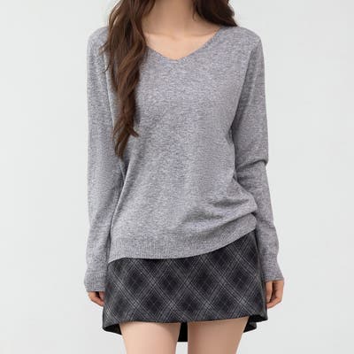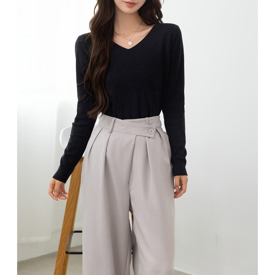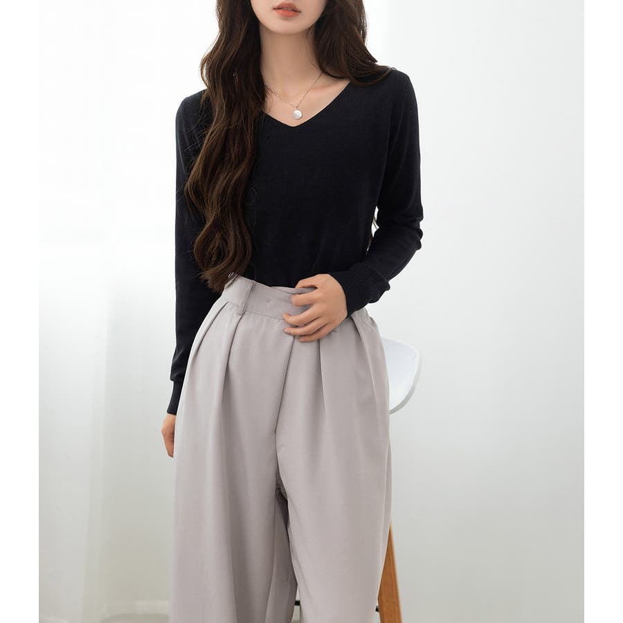 襟ぐりが広めのVネックでデコルテ周りを綺麗見せ♪